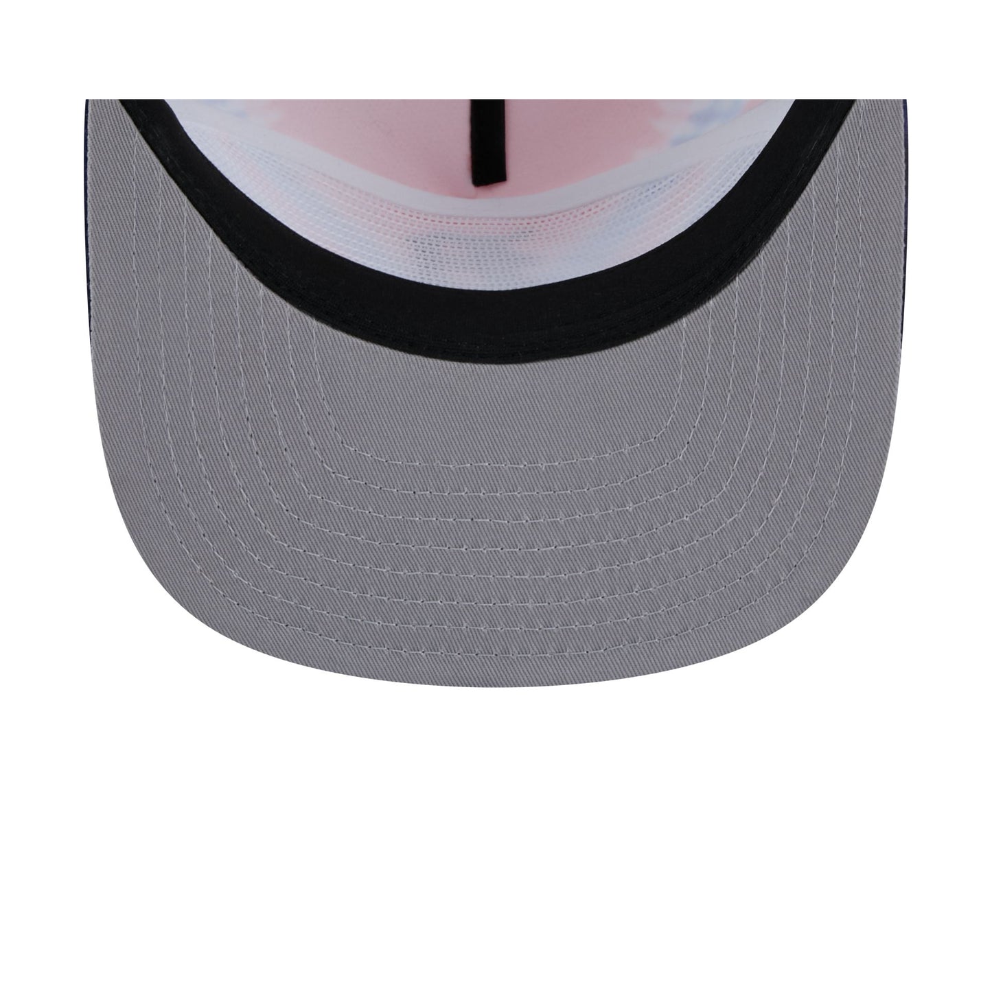 The Detroit Tigers Tie-Dye Golfer features an embroidered Tigers logo at the front panels against a tie-dye front panel. Additional details include a snapback closure at a mesh rear and a gray undervisor.