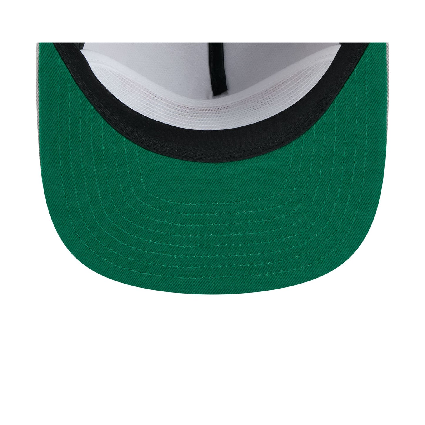 The Detroit Tigers Vintage Gray Golfer features an embroidered "PROPERTY OF" Tigers wordmark at the front panels with a team logo at the right-wear side and a rope at the visor. Additional details include a snapback closure at the rear and a green undervisor.