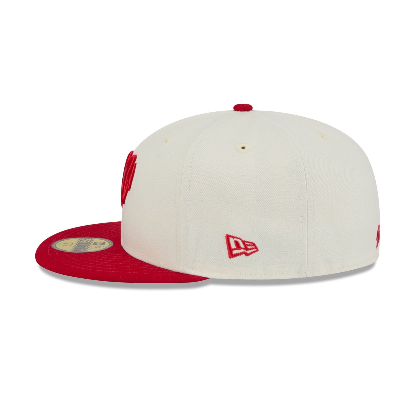 The Diablos Rojos del México Fan Gear 59FIFTY Fitted Cap features an embroidered Diablos Rojos logo at the front panels with a matching team wordmark at the rear. Additional details include a screen-printed team name at the right-wear side with a red visor and a gray undervisor.