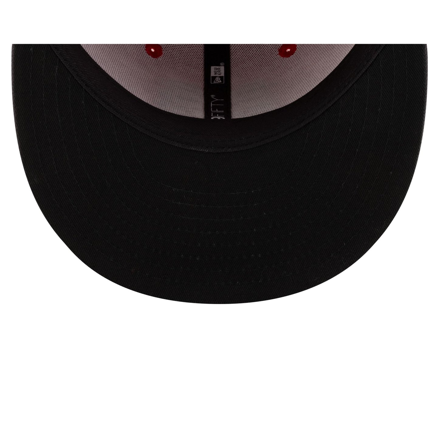 The Diablos Rojos del México LMB 100th Anniversary Alt 59FIFTY Fitted Cap features an embroidered Diablos Rojos logo at the front panels with a LMB 100th Anniversary patch at the rear and black undervisor.