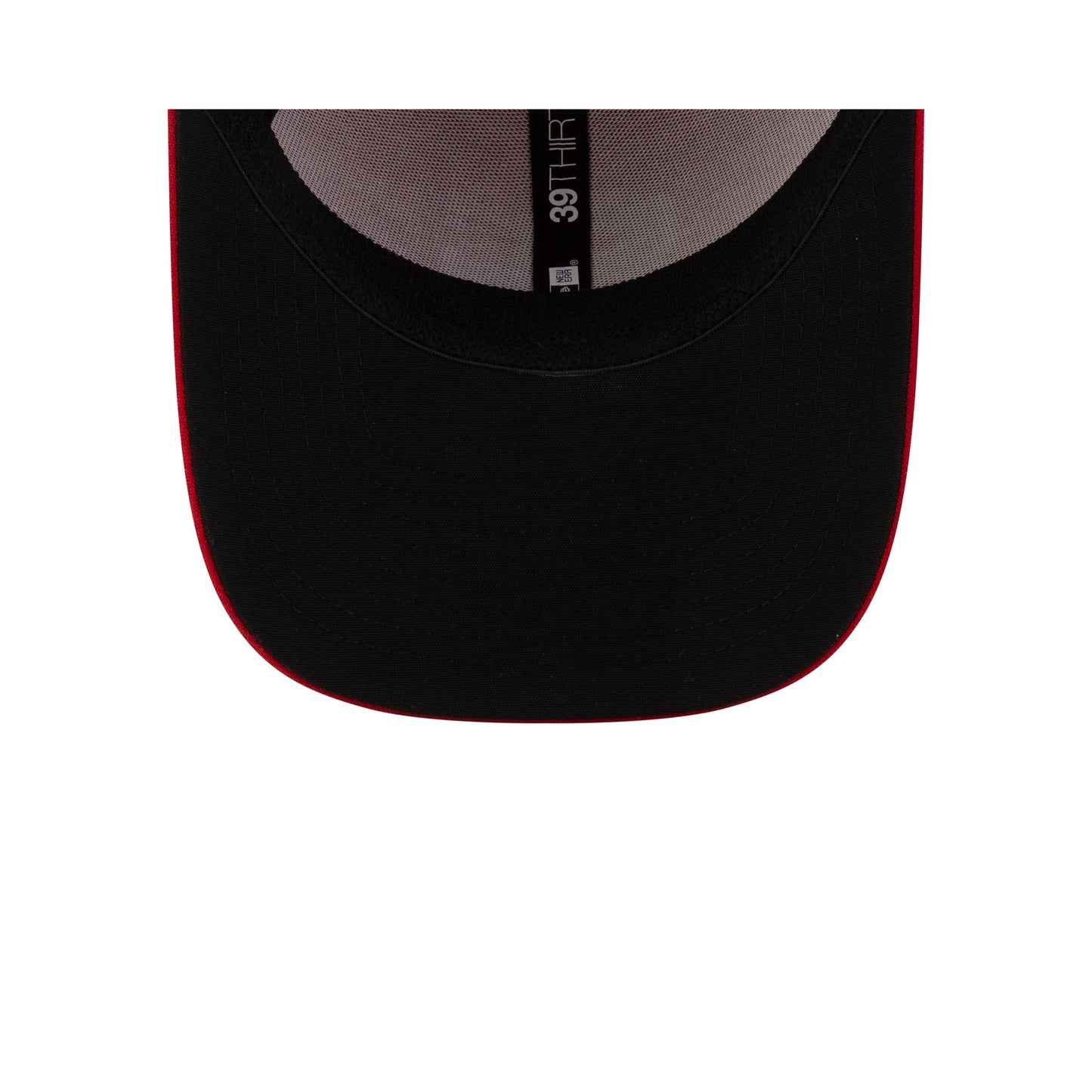 The Diablos Rojos del México LMB 100th Anniversary Away 39THIRTY Stretch Fit Cap features an embroidered Diablos Rojos alternate logo at the front panels with a LMB 100th Anniversary patch at the rear and black undervisor.