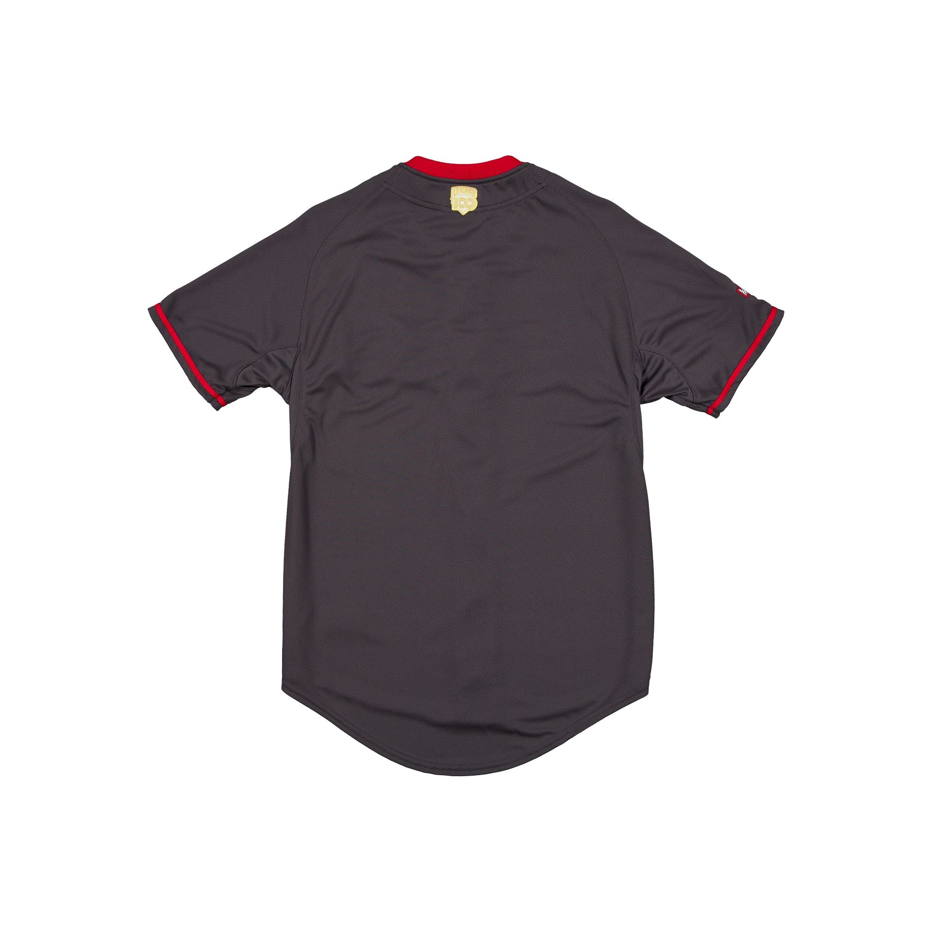 The Diablos Rojos del México LMB 100th Anniversary Gray Alt Jersey features an embroidered Diablos Rojos home name at the chest with a New Era Official Merchandise patch at the front hemline, a team logo at the right sleeve, and a LMB 100th Anniversary logo at the rear.