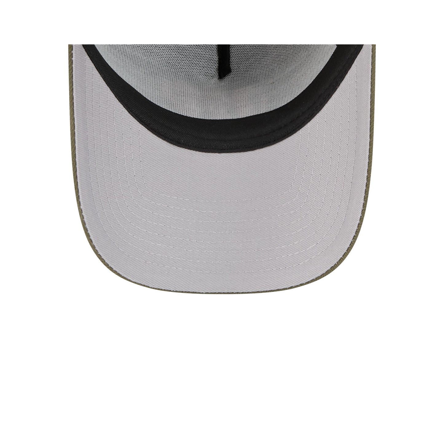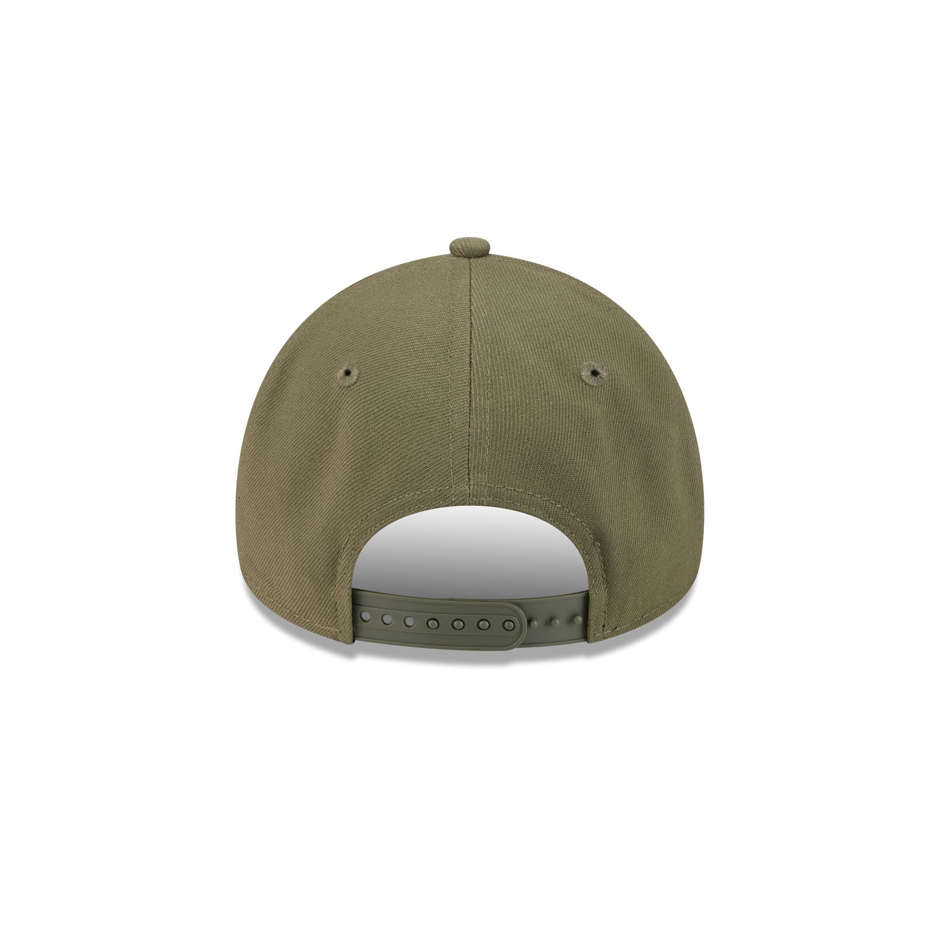The Diablos Rojos del México Olive 9FORTY A-Frame Snapback features an embroidered Diablos Rojos logo at the front with a snapback closure at the rear and a gray undervisor.