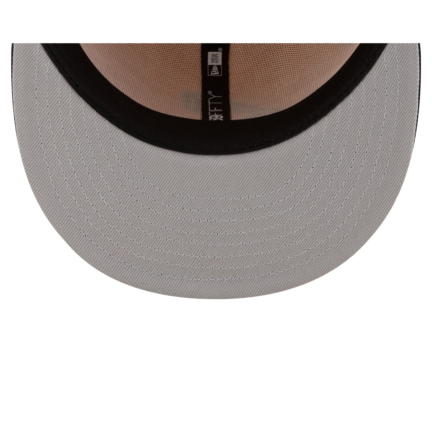 The Diet Starts Monday x Cleveland Guardians Lightening Bolts 59FIFTY Fitted Cap features an embroidered Guardians Cooperstown wordmark and lightening bolts at the front panels with a "Is this Love or Madness?" wordmark at the left-wear side. Additional details include a 1995 Champions patch at the right-wear side, a Diet Starts Monday logo above an MLB Batterman logo at the rear, and a gray undervisor.