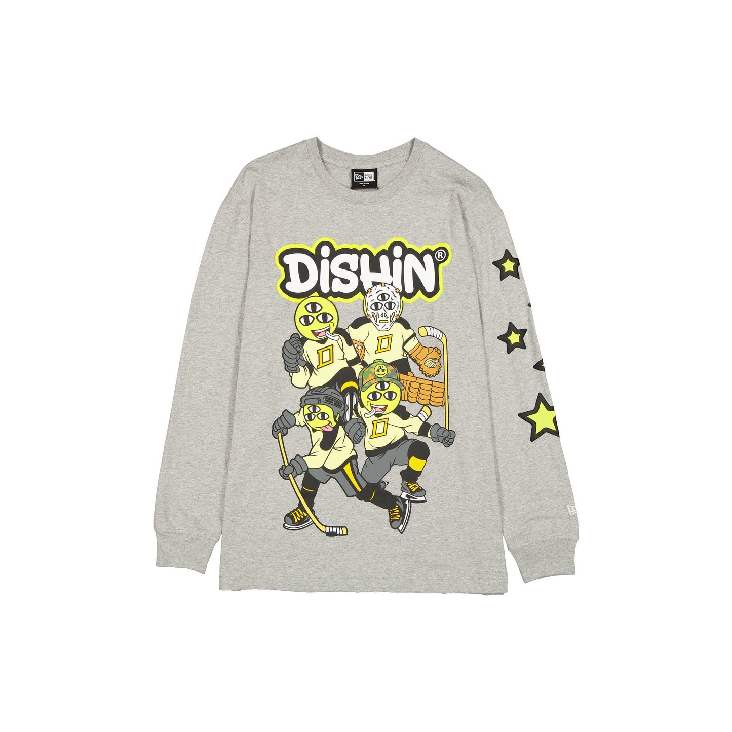 The DISHIN® Long Sleeve T-Shirt features a screen-printed DISHIN® player graphic at the front with star details at the left sleeve and a woven brand jock tag at the rear hem.