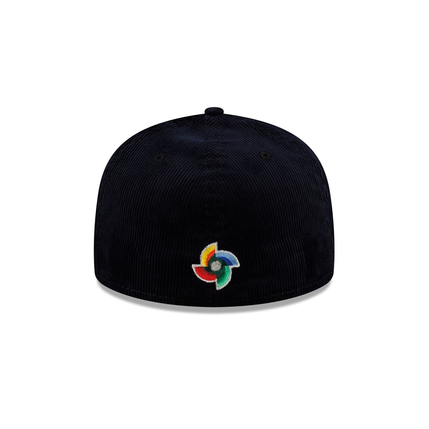 The Dominican Republic 2025 World Baseball Classic 59FIFTY Fitted Cap features an embroidered Dominican Republic logo at the front panels with their Flag at the right-wear side against a corduroy fabrication. Additional details include a World Baseball classic logo at the rear with a gray undervisor.