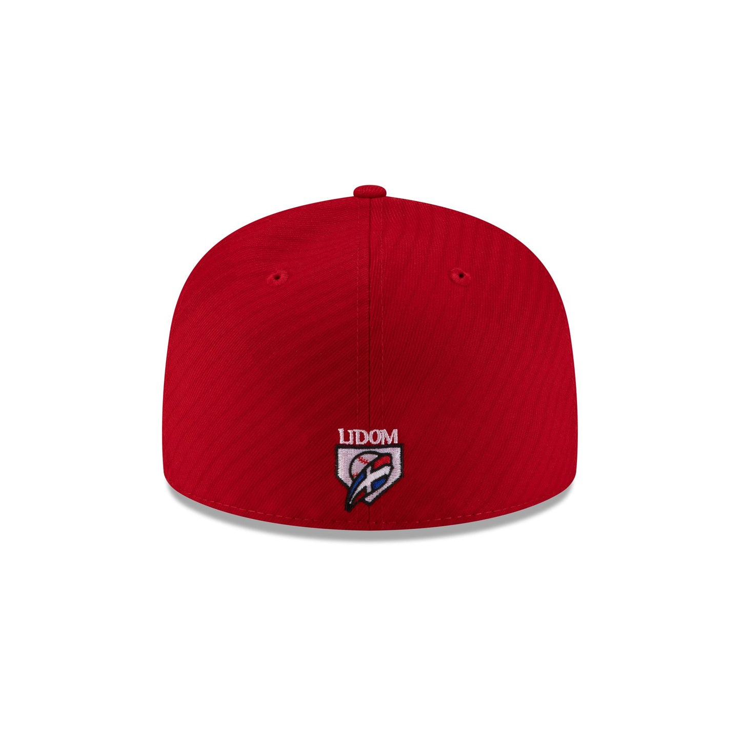 The Dominican Republic Away Red 59FIFTY Fitted Cap features an embroidered DR Away logo at the front panels with a LIDOM logo at the rear and a black undervisor.