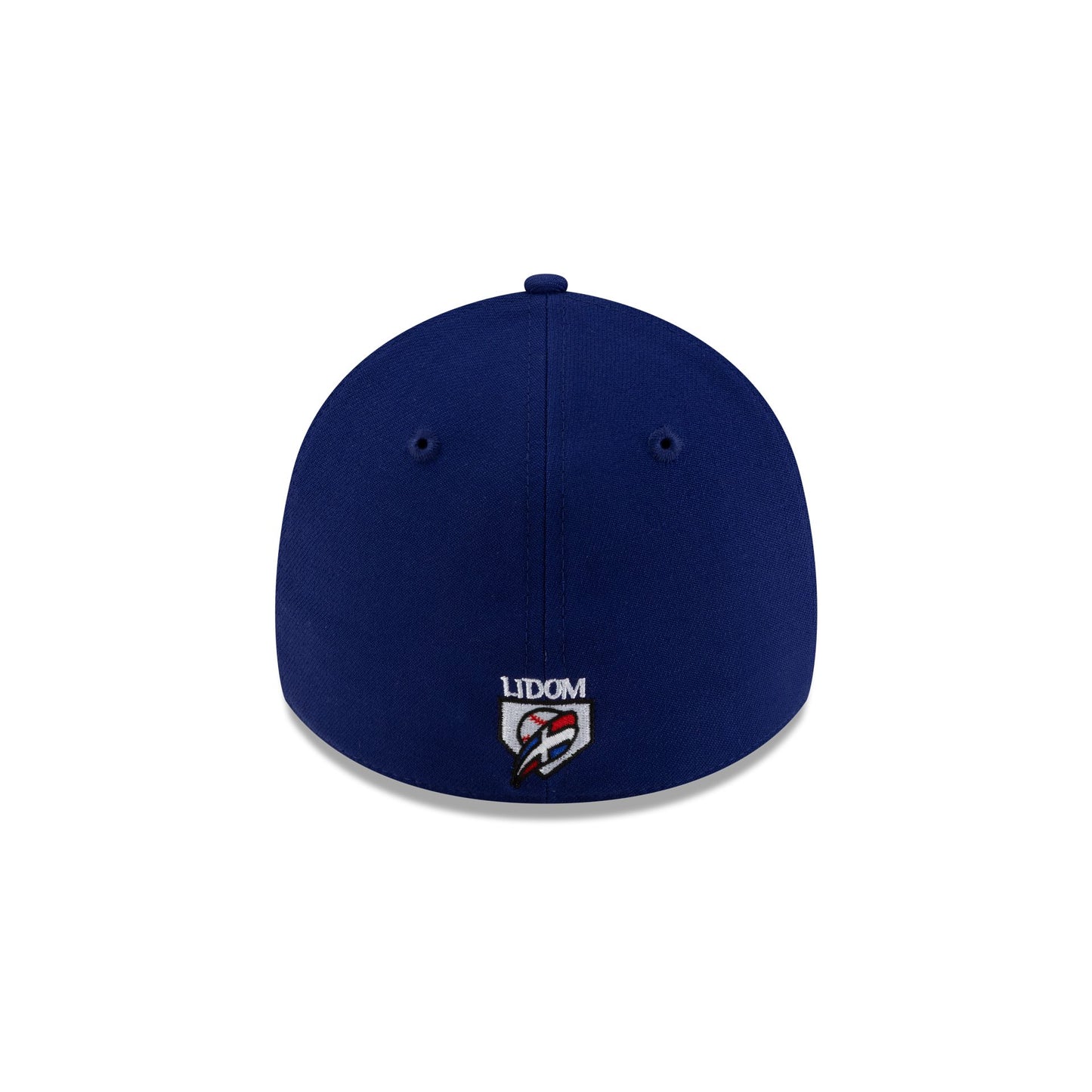 The Dominican Republic Home Blue 39THIRTY Stretch Fit Cap features an embroidered DR Home logo at the front panels with a LIDOM logo at the rear and a black undervisor.