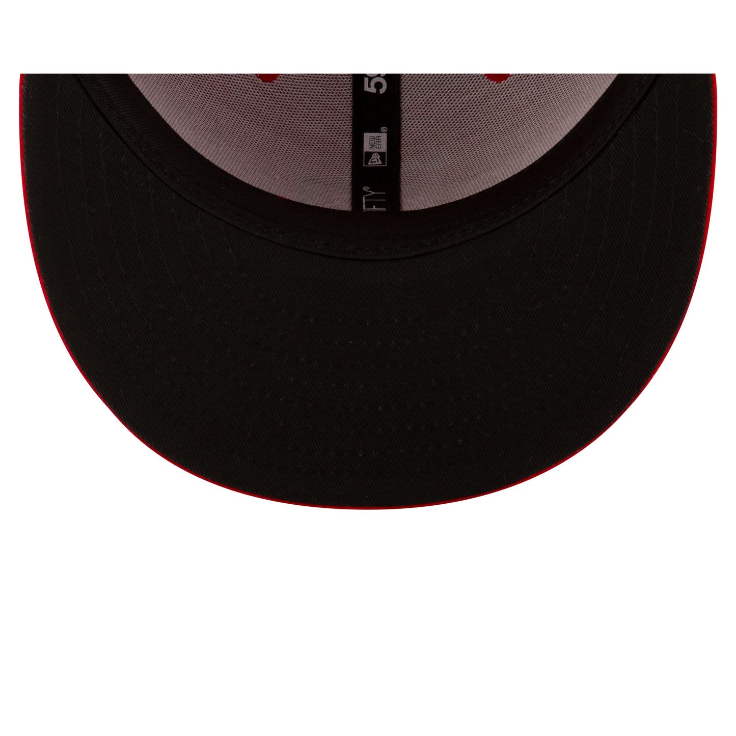 The Dominican Republic Red 59FIFTY Fitted features an embroidered DR logo at the front panels with a matching FEDOM logo at the rear and a black undervisor.