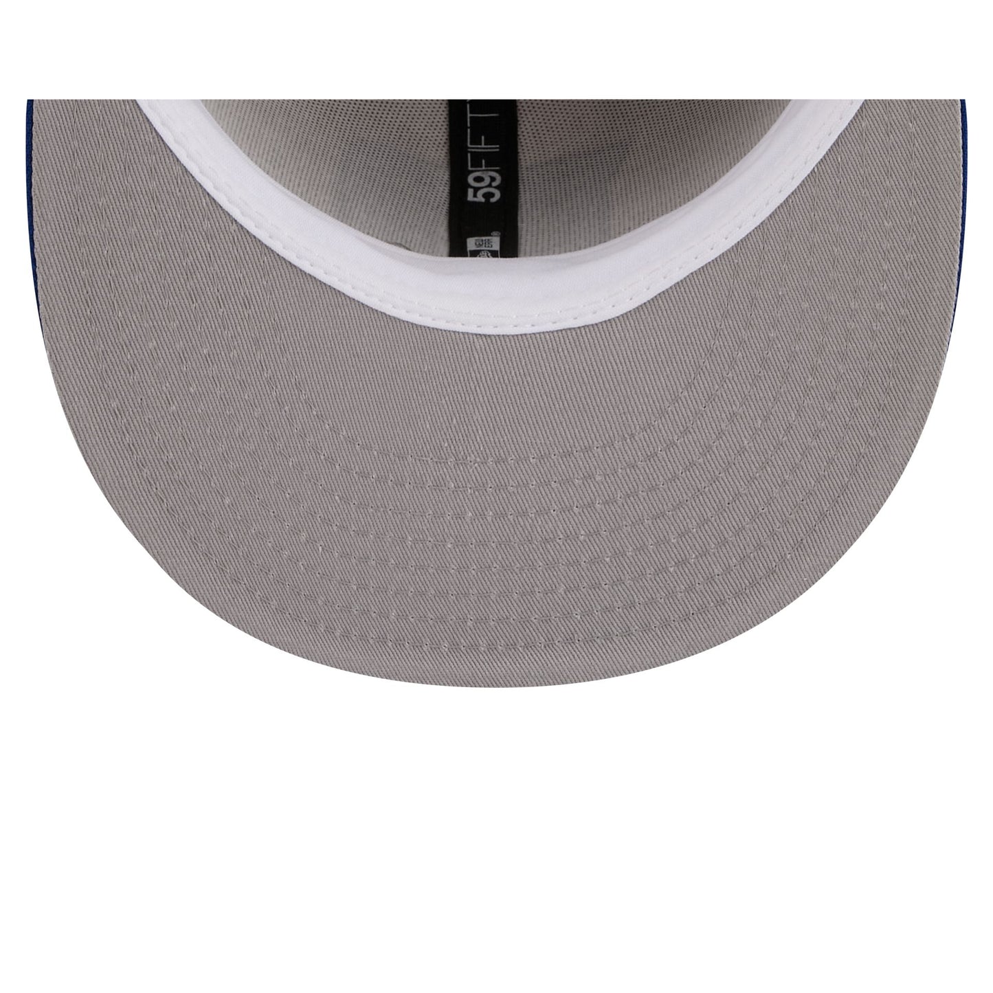 The Duke Blue Devils Collegiate Two-Tone Chrome 59FIFTY Fitted Cap features an embroidered Blue Devils logo at the front panels with a team wordmark at the rear. Additional details include an alternate team logo patch at the right-wear side with a blue visor and a gray undervisor.