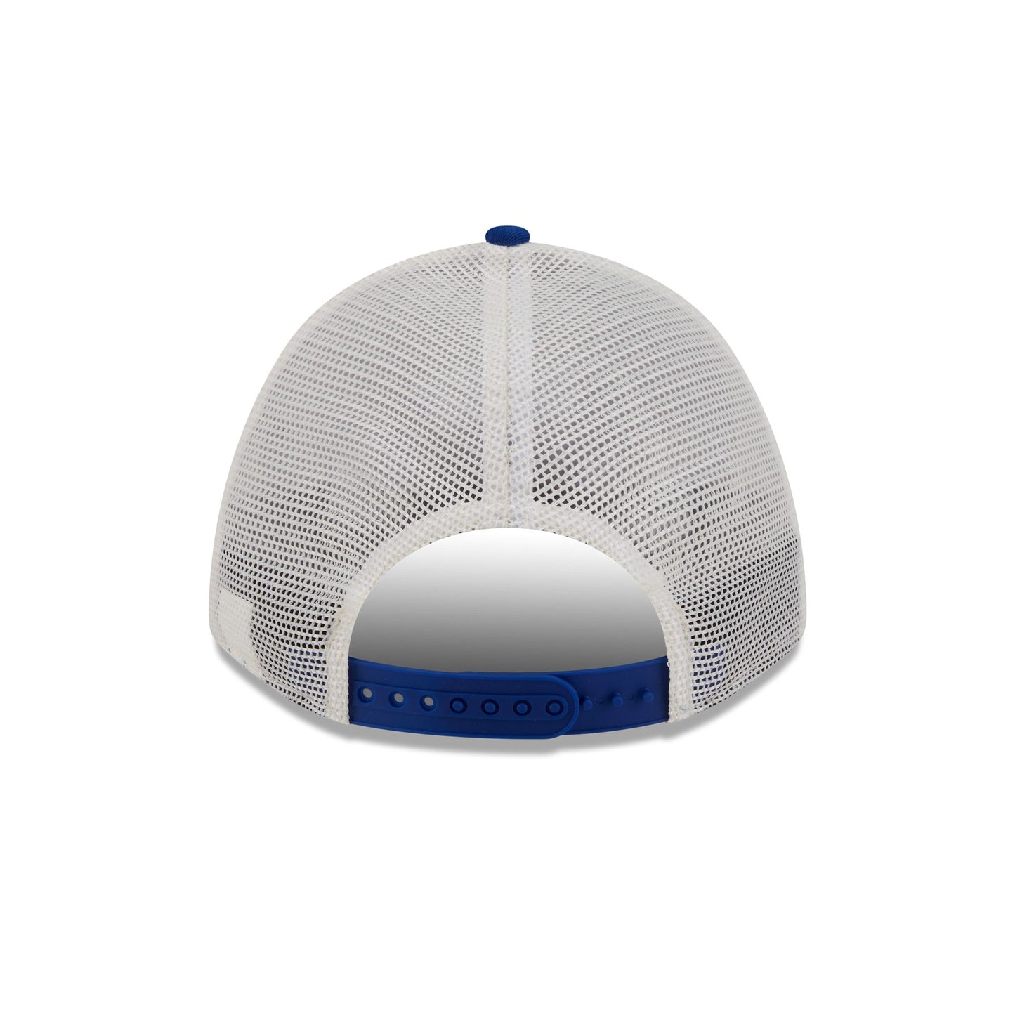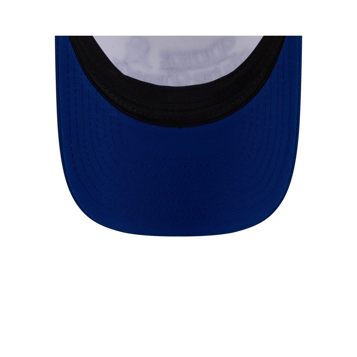 The Duke Blue Devils Retro Chrome Women's White 9FORTY M-Crown A-Frame Trucker features an embroidered Blue Devils graphic against a plush front panel with an adjustable snapback closure at a mesh rear and a team color undervisor.