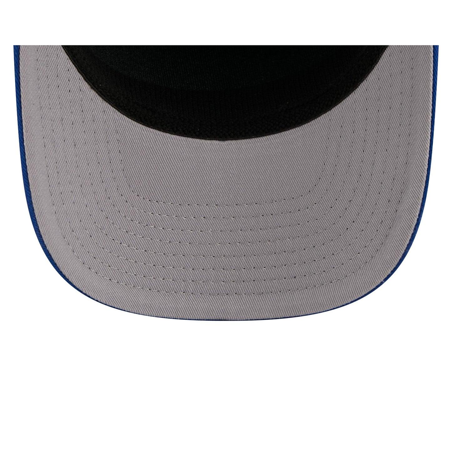 The Duke Blue Devils Split Panel 9SEVENTY Stretch-Snap features an embroidered Blue Devils logo at the front panel with a split crown construction and a rope at the visor. Additional details include an adjustable stretch-snap closure at the rear and a gray undervisor.