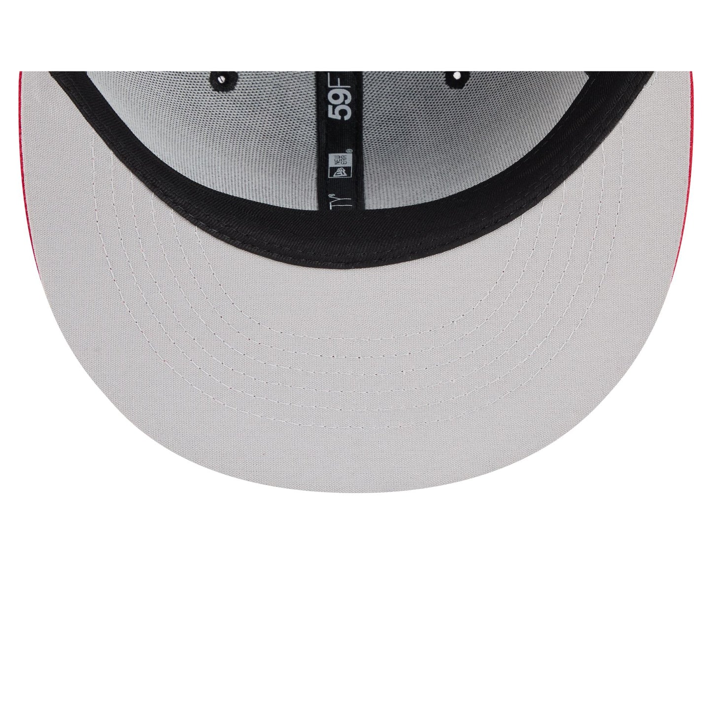 The Durham Bulls 2026 Copa de la Diversión 59FIFTY Fitted Cap features an embroidered Bulls logo at the front panels with a matching MiLB Batterman logo at the rear, a decorative embroidery at the visor, and a gray undervisor.