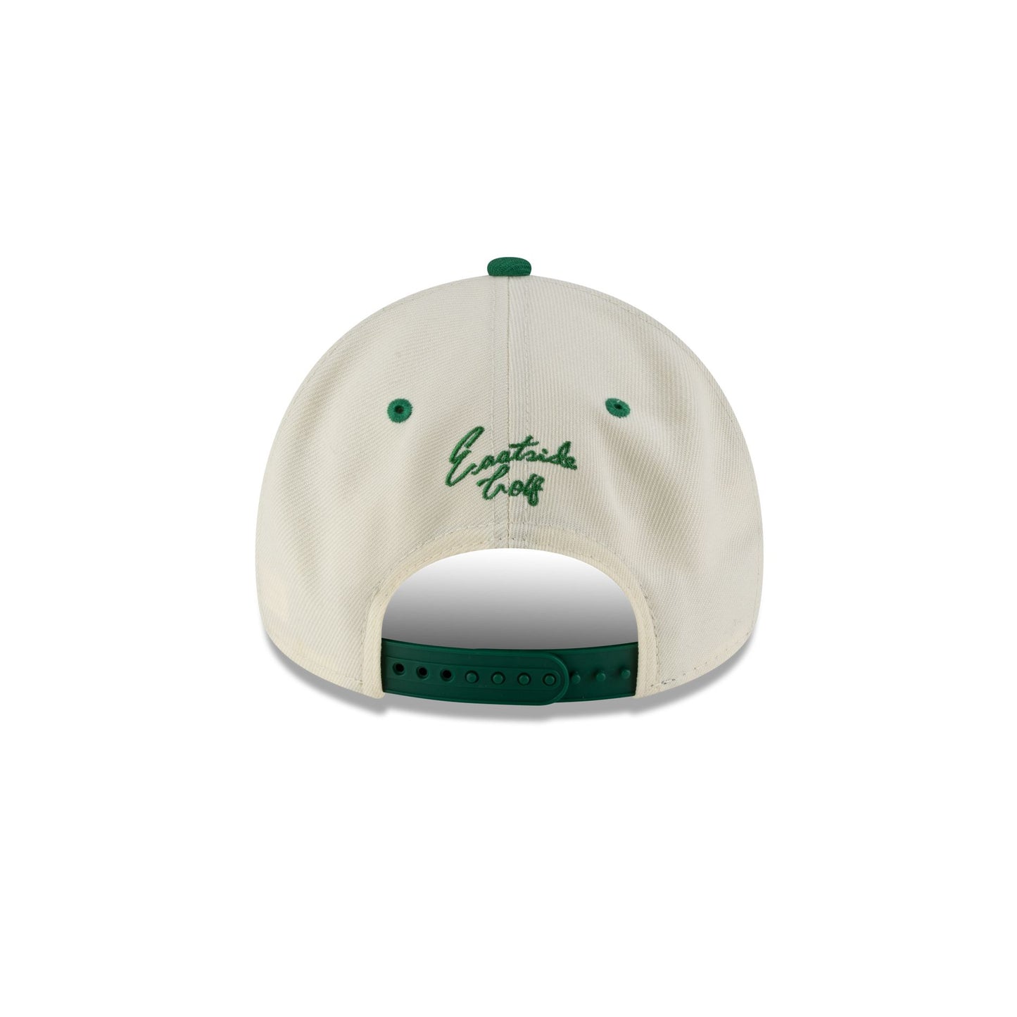 The Eastside Golf x Boston Celtics 9FORTY A-Frame Snapback features an embroidered basketball and net at the front panels with a team logo at the right-wear side. Additional details include an Eastside Gold script embroidery above an adjustable snapback closure at the rear and a gray undervisor.