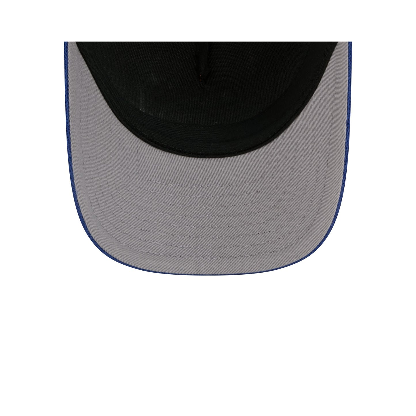 The Edmonton Oilers Sock 9FORTY M-Crown A-Frame Trucker features an embroidered Oilers logo at the front panels against a split sock fabrication. Additional details include a snapback closure at a mesh rear.
