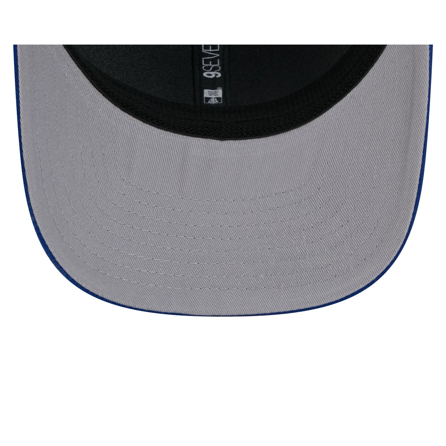 The Edmonton Oilers Team 9SEVENTY Trucker features an embroidered Oilers logo at the front panels with a woven team tag at a snapback closure at the rear and a gray undervisor.