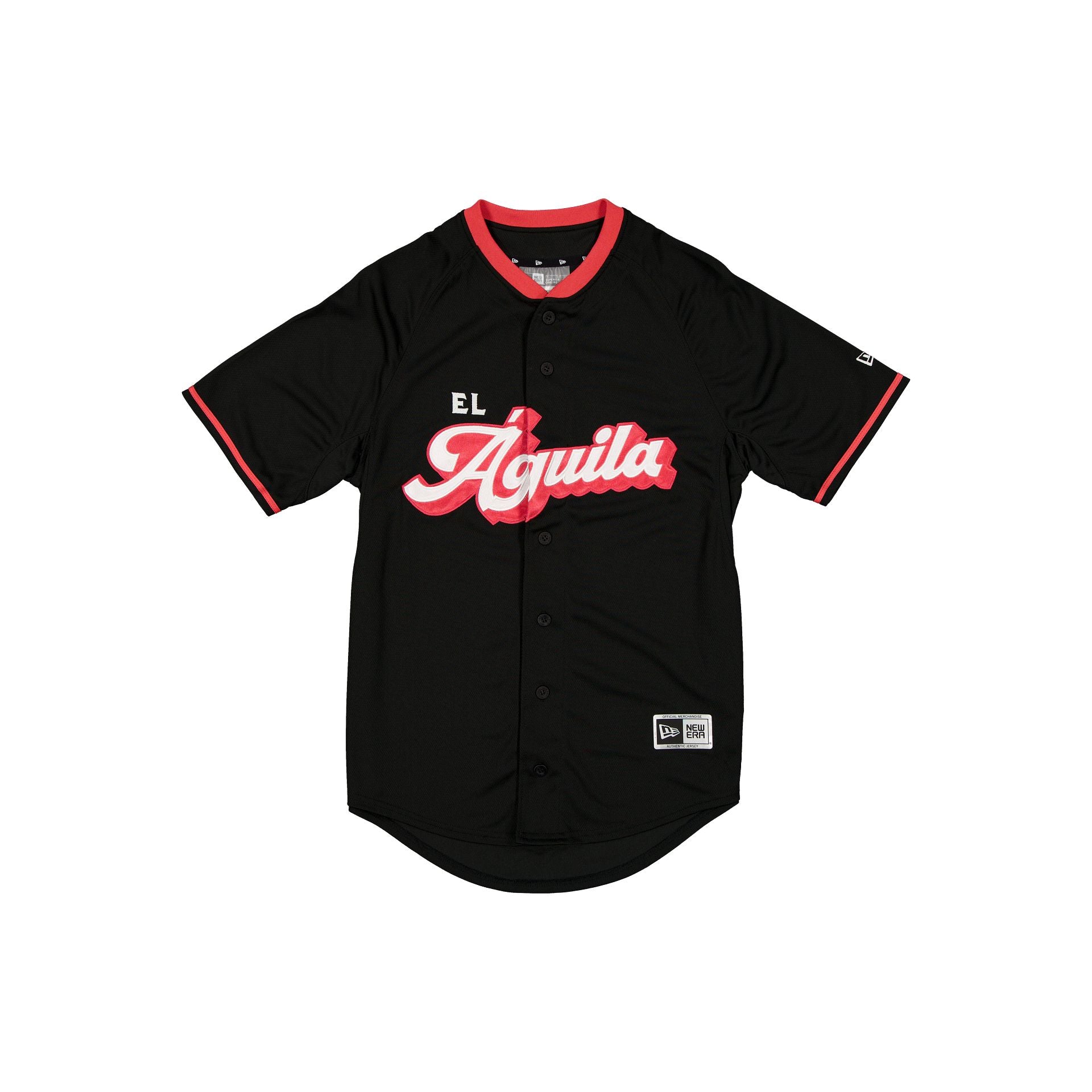The El Águila de Veracruz LMB 100th Anniversary Alt Jersey features an embroidered El Águila wordmark at the chest with a New Era Official Merchandise patch at the front hemline and a LMB 100th Anniversary logo at the rear.