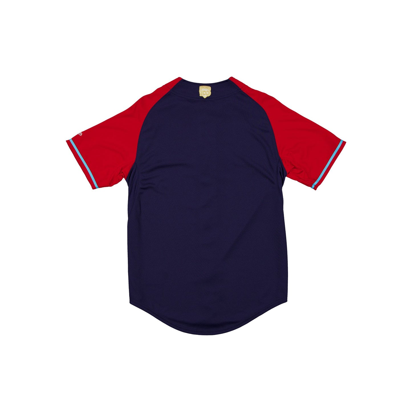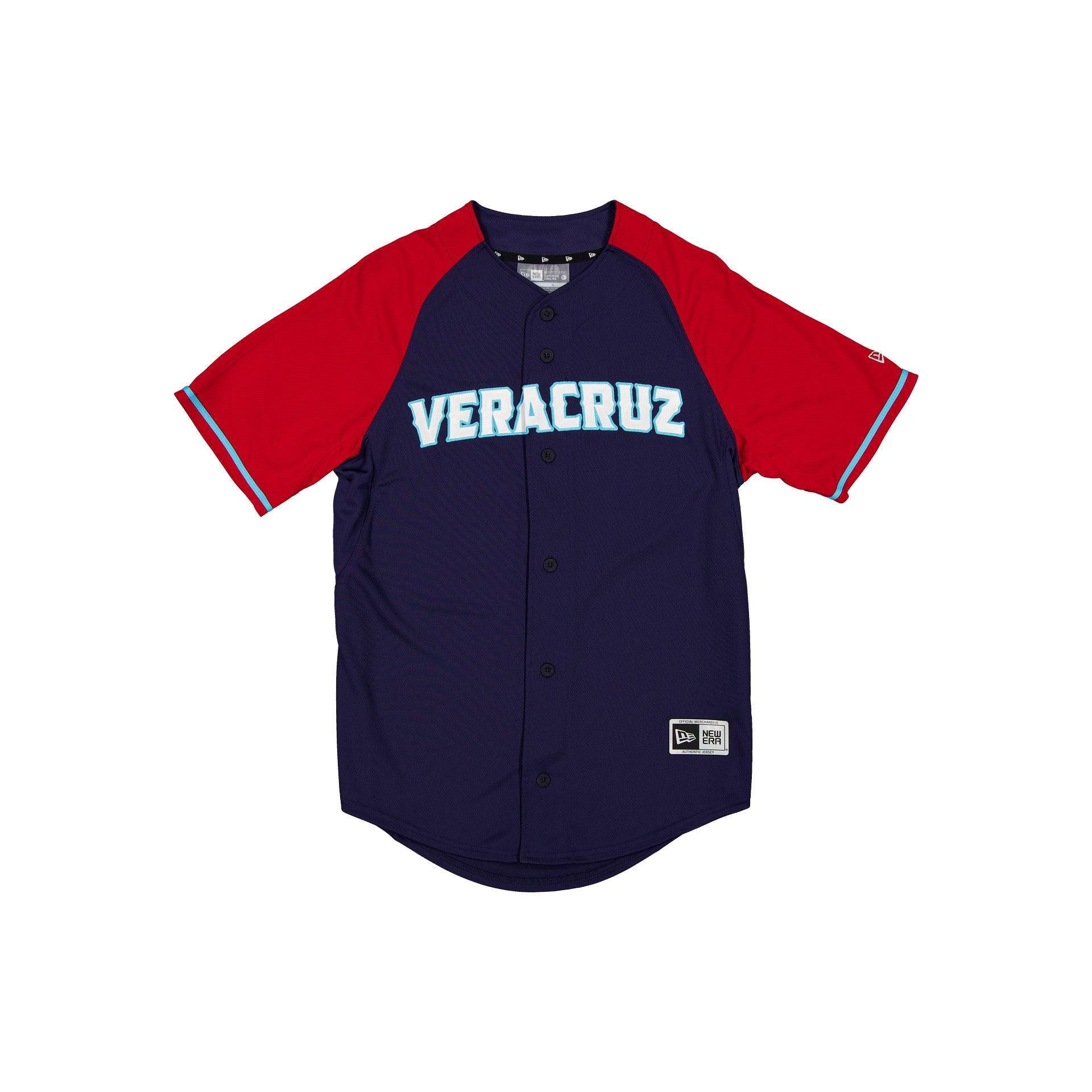 The El Águila de Veracruz LMB 100th Anniversary Away Jersey features an embroidered El Águila home name at the chest with a New Era Official Merchandise patch at the front hemline and a LMB 100th Anniversary logo at the rear.