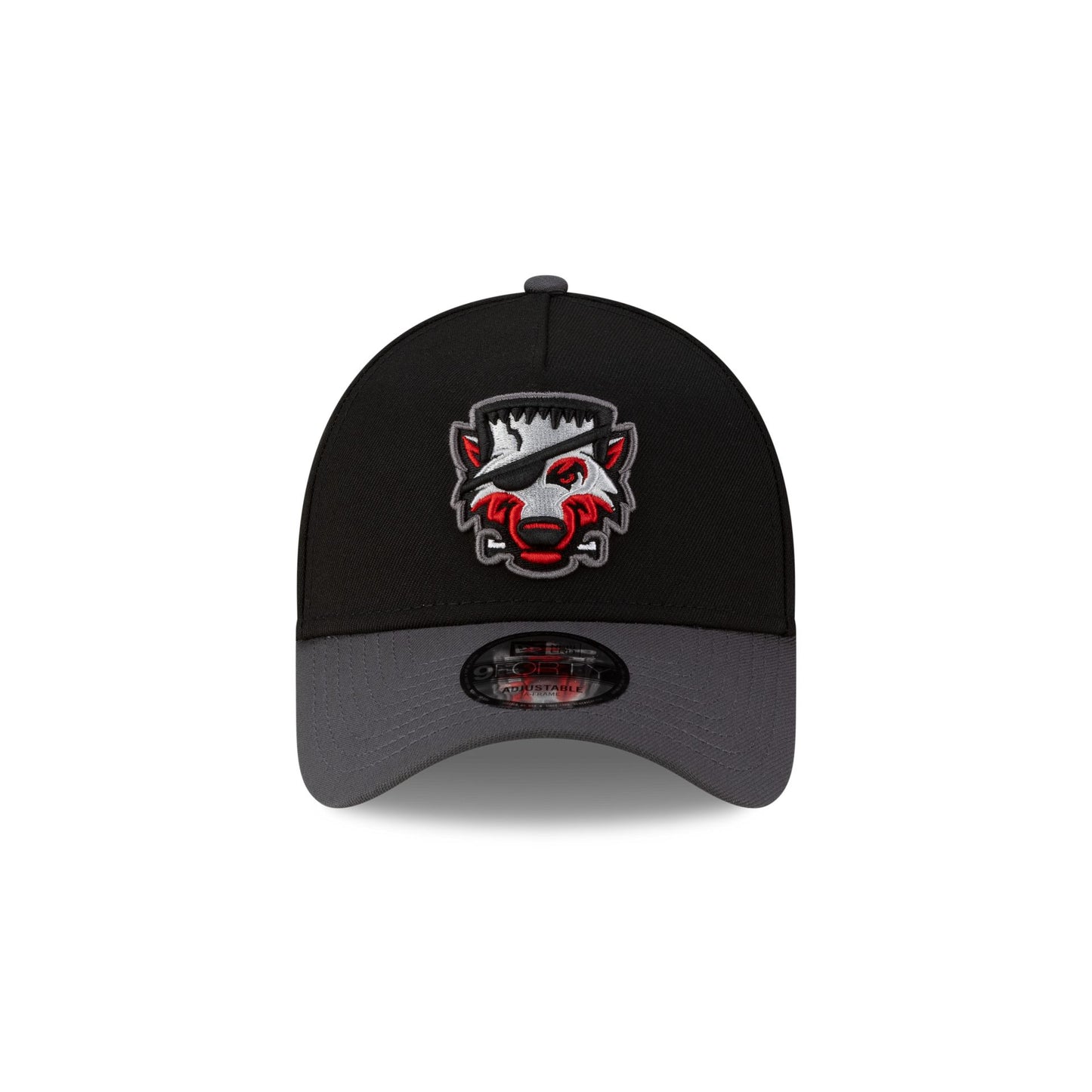 The Erie SeaWolves Halloween Red 9FORTY A-Frame Snapback features an embroidered Erie SeaWolves themed logo at the front panels with an adjustable snapback closure at the rear, a gray visor, and a red undervisor.