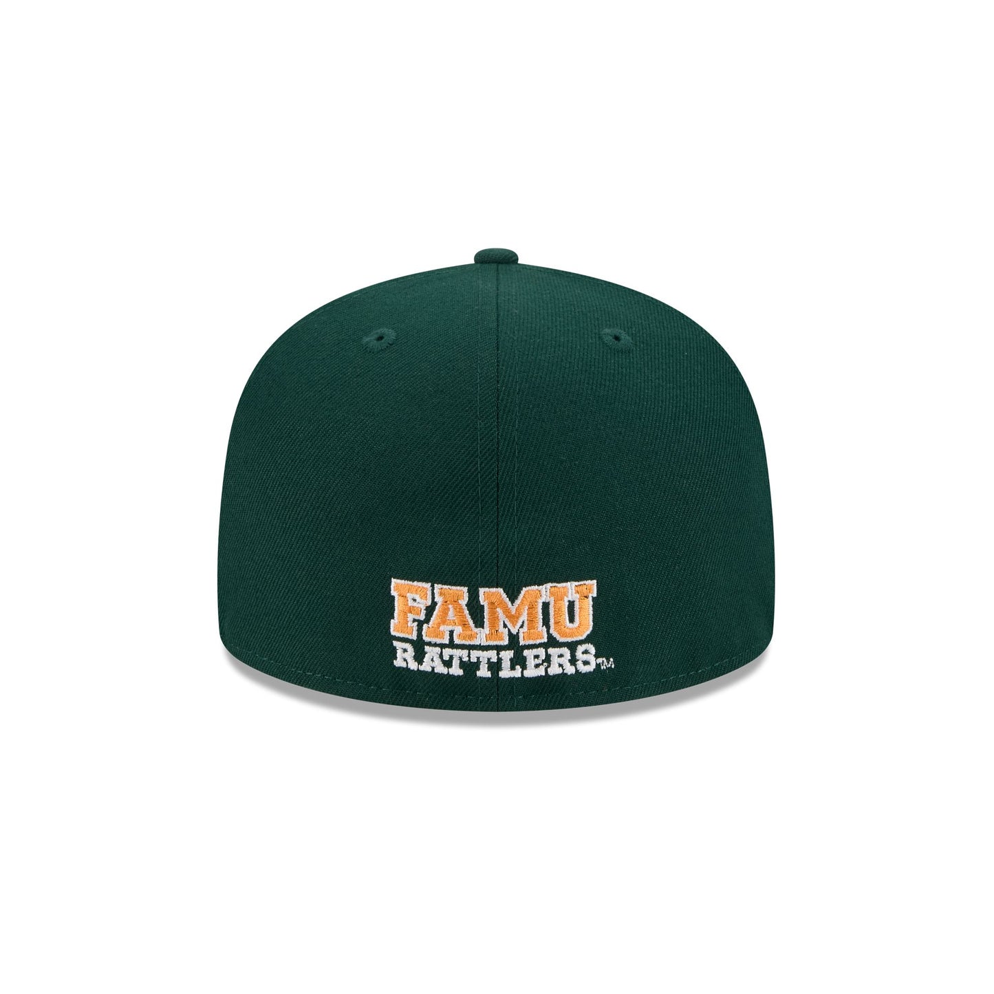 The FAMU Rattlers Go-To 59FIFTY Fitted Cap features an embroidered Rattlers logo at the front panels with a matching team wordmark at the rear and a gray undervisor.