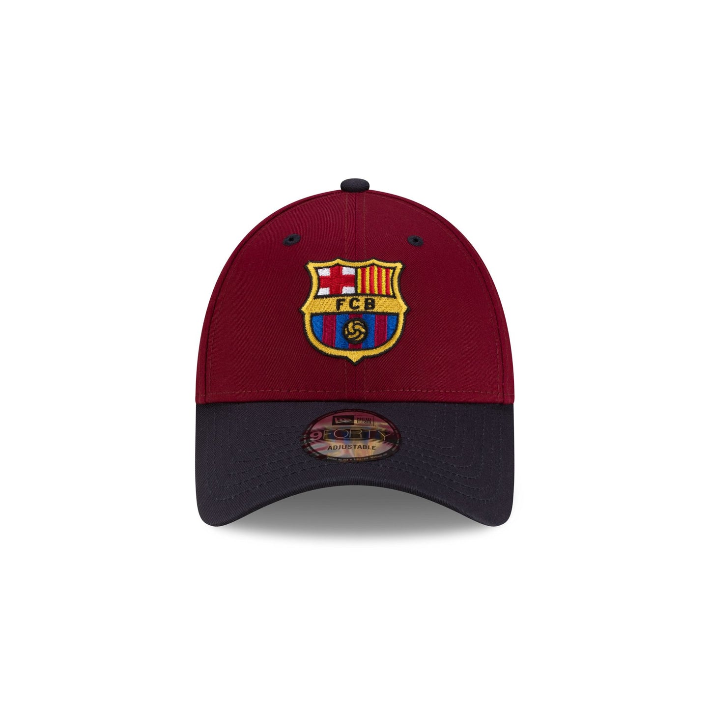 The FC Barcelona Contrast Cardinal 9FORTY Adjustable Cap features an embroidered Barcelona logo at the front panels with an adjustable D-Ring closure and a navy undervisor.