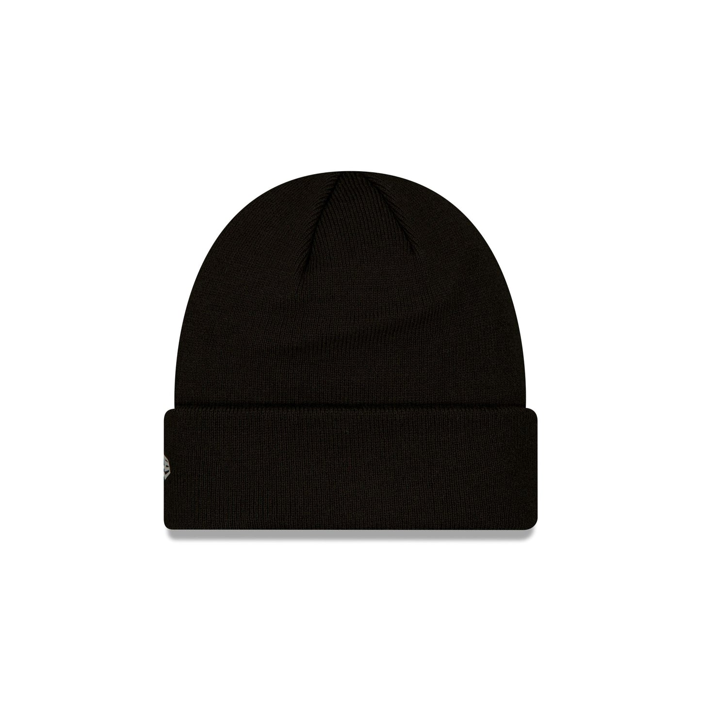 The FC Barcelona Reflective Logo Black Cuff Knit features a reflective silicone Barcelona logo at the front with a New Era Flag at the left-wear side.