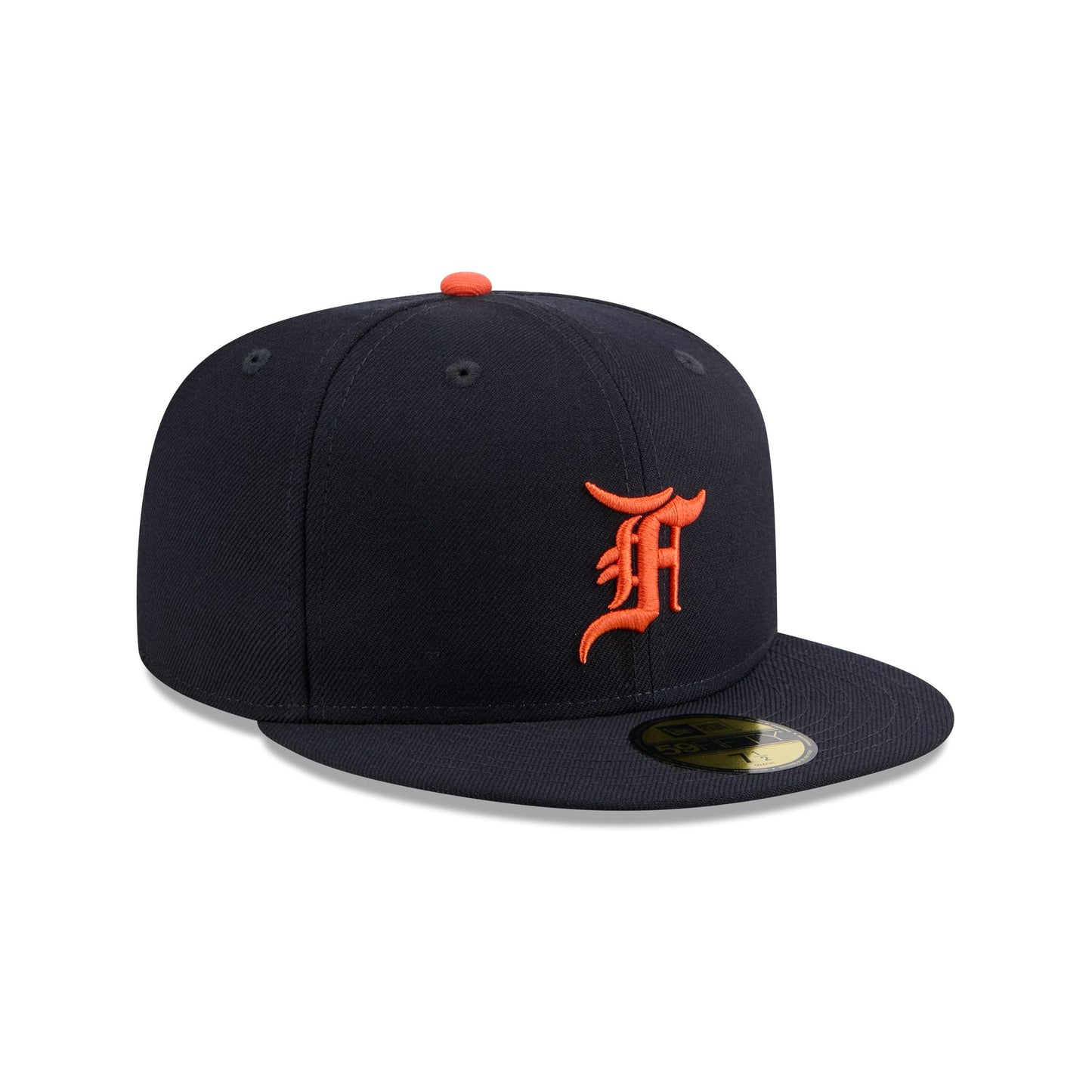 The Fear of God Essentials Detroit Tigers 59FIFTY Fitted Cap features an embroidered Fear of God logo at the front panels with a script New Era wordmark at the left-wear side. Additional details include a stitched Fear of God tag at the rear and a gray undervisor.