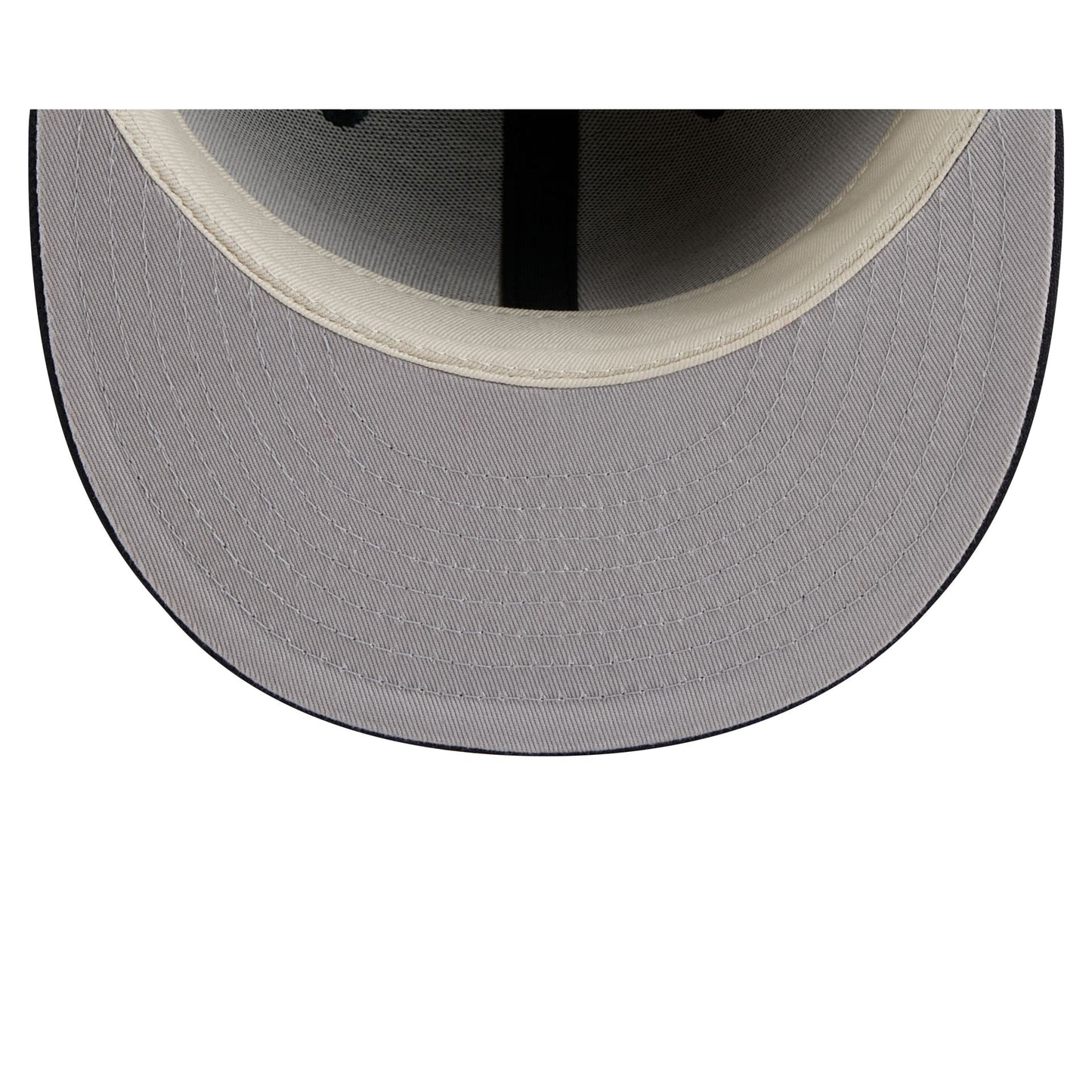 The Fear of God Essentials New York Yankees 59FIFTY Fitted Cap features an embroidered Fear of God logo at the front panels with a script New Era wordmark at the left-wear side and a 2024 World Series patch at the right-wear side. Additional details include a stitched Fear of God tag at the rear and a gray undervisor.