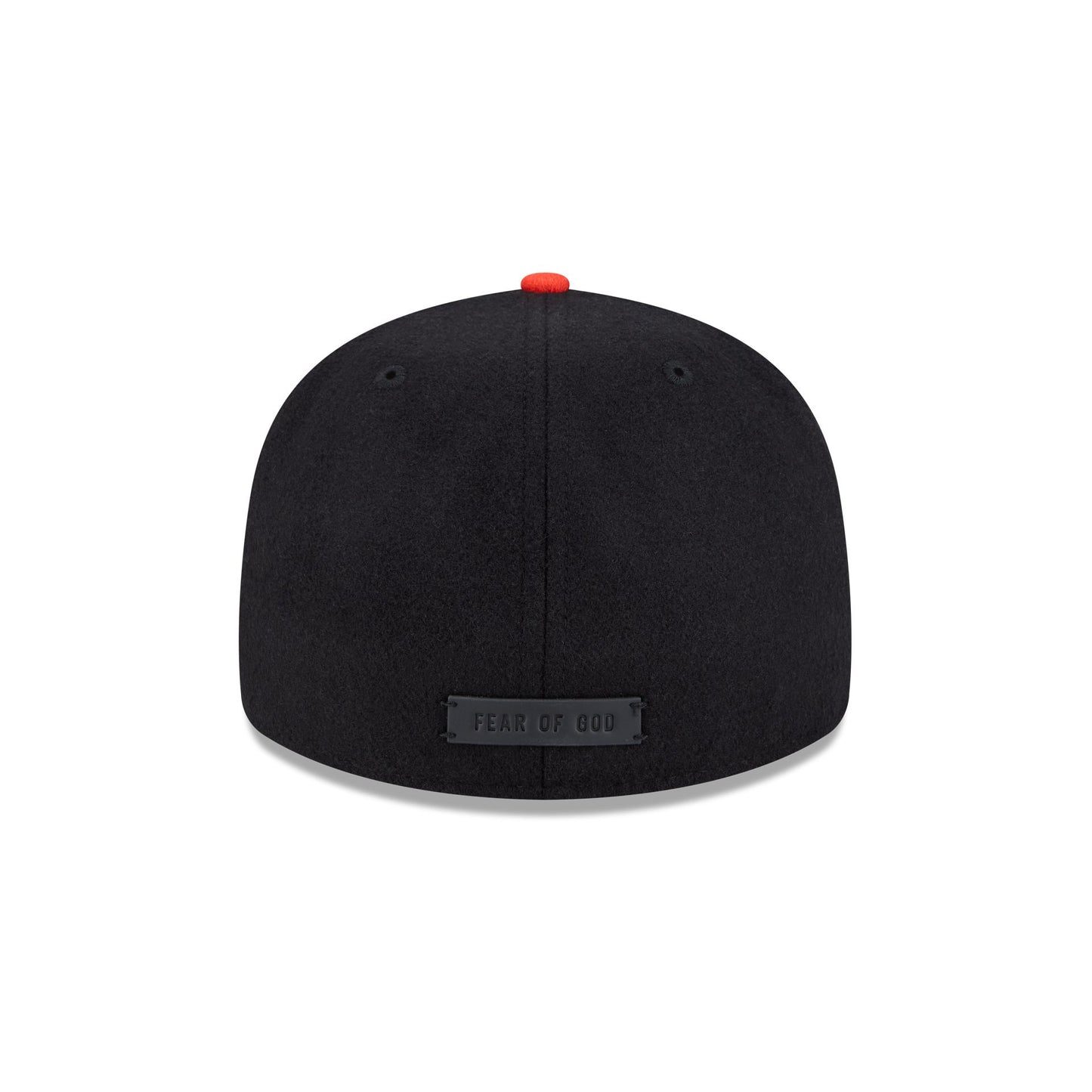 The Fear of God Essentials San Francisco Giants Retro Crown 59FIFTY Fitted Cap features an embroidered Giants logo at the front panels with a Fear of God Essentials bar patch at the rear, a poly-wool blend fabrication, and a green undervisor.