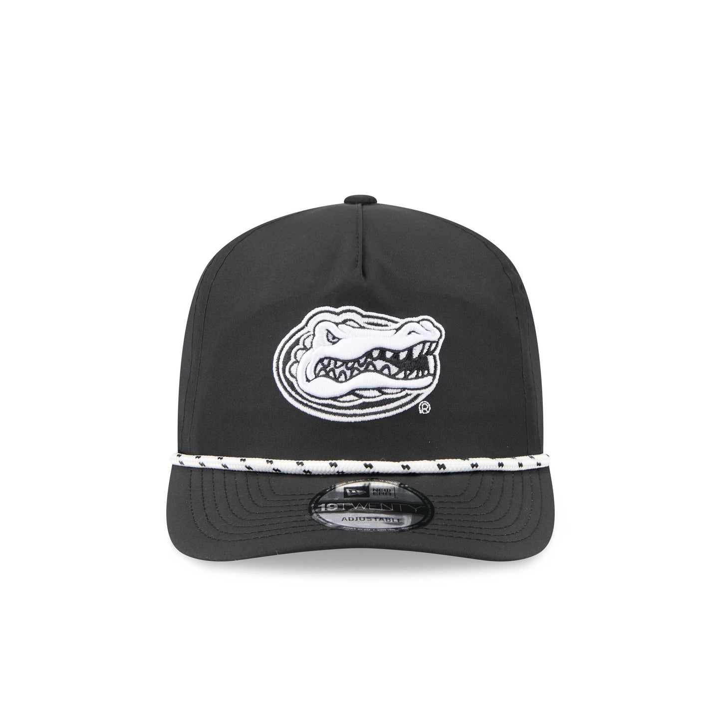 The Florida Gators Black and White Rope 19TWENTY Snapback features an embroidered Gators logo and rope at the front with a snapback closure at the rear and a gray undervisor.