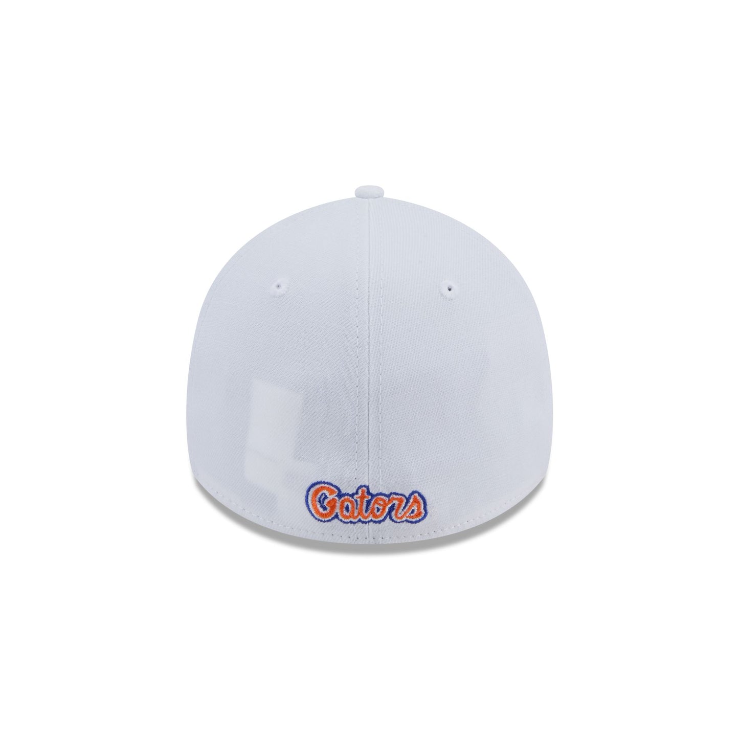 The Florida Gators Chrome 39THIRTY Stretch Fit Cap features an embroidered Gators logo at the front panels with a matching team wordmark at the rear and a white undervisor.