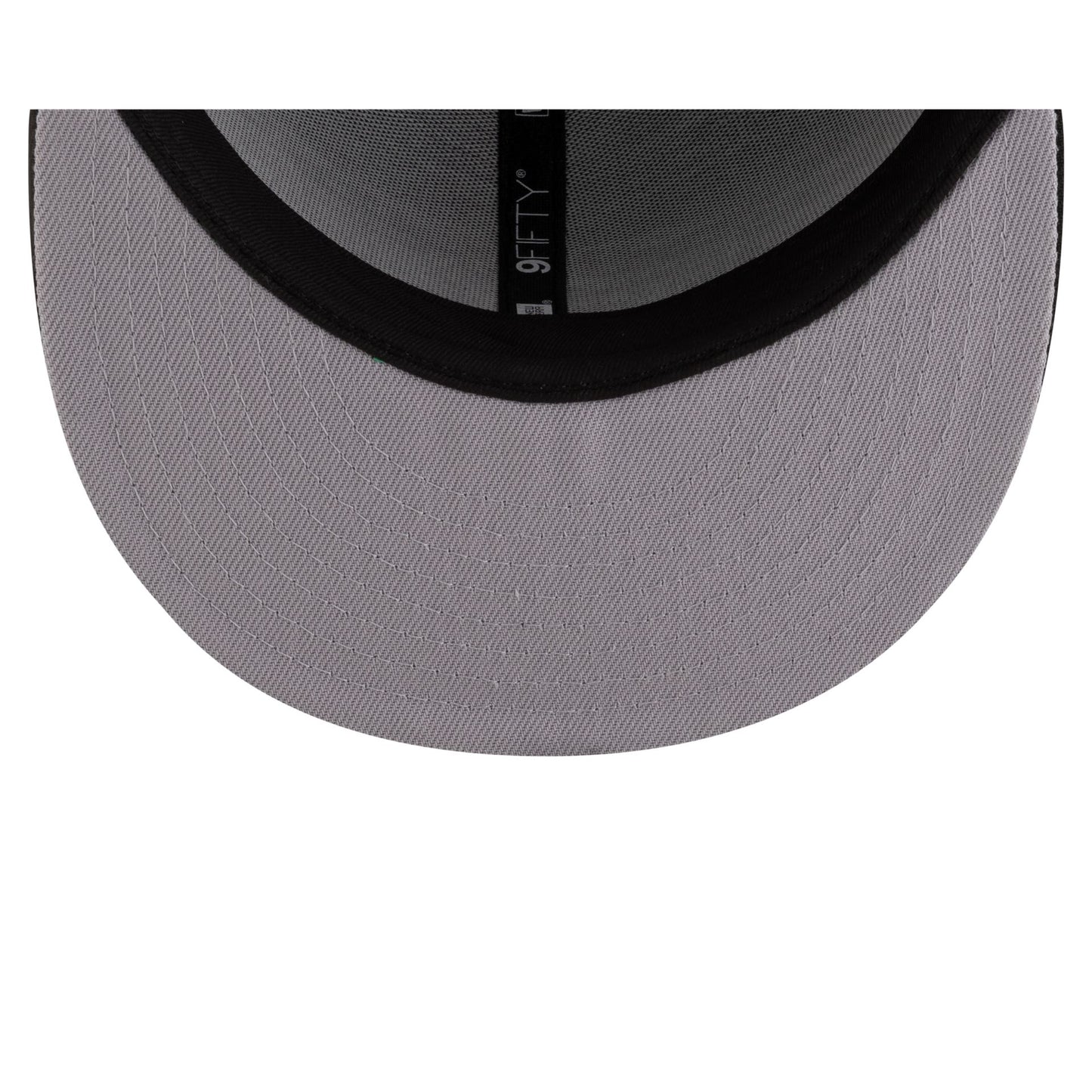 The Florida Gators College Vault Black & White 9FIFTY Snapback features an embroidered Gators logo at the front panels with a logo at the right-wear side and a snapback closure at the rear.