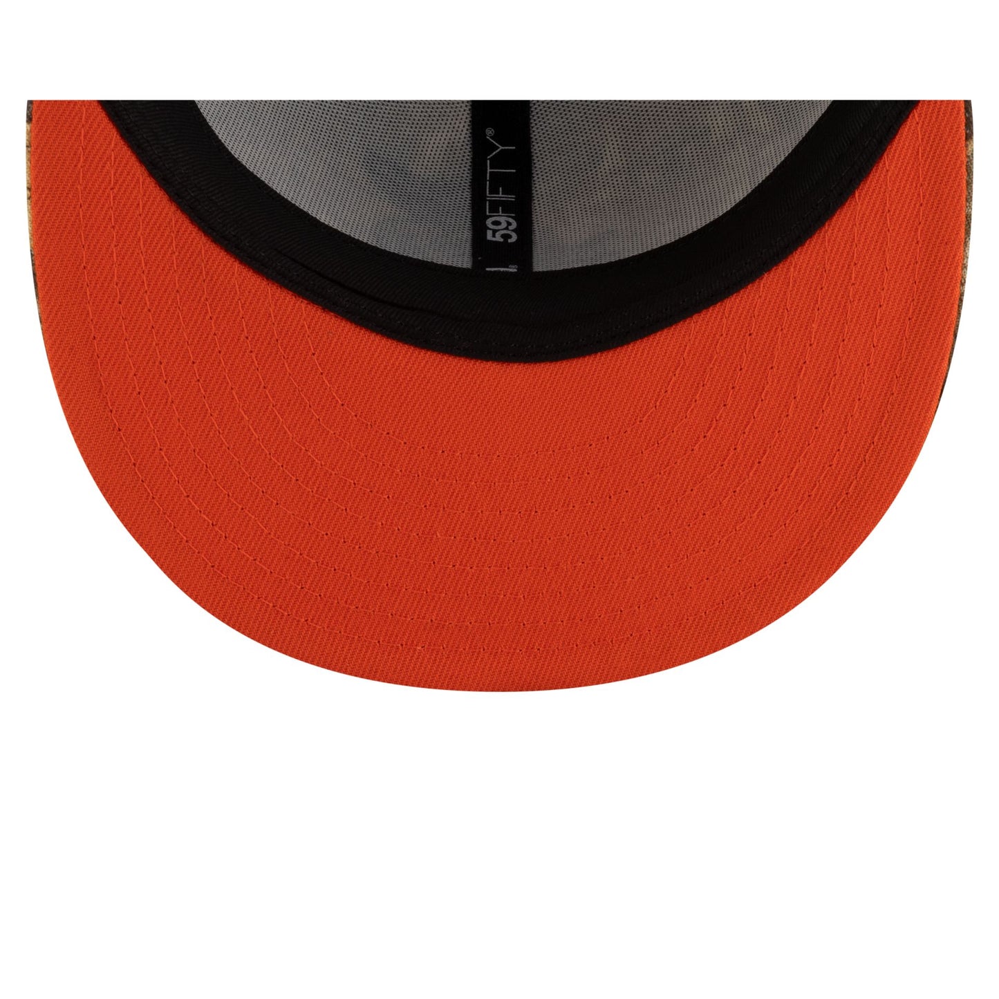 The Florida Gators College Vault Real Tree 59FIFTY Fitted Cap features an embroidered Gators logo at the front panels with a Final Four patch at the right-wear side and a snapback closure at the rear.