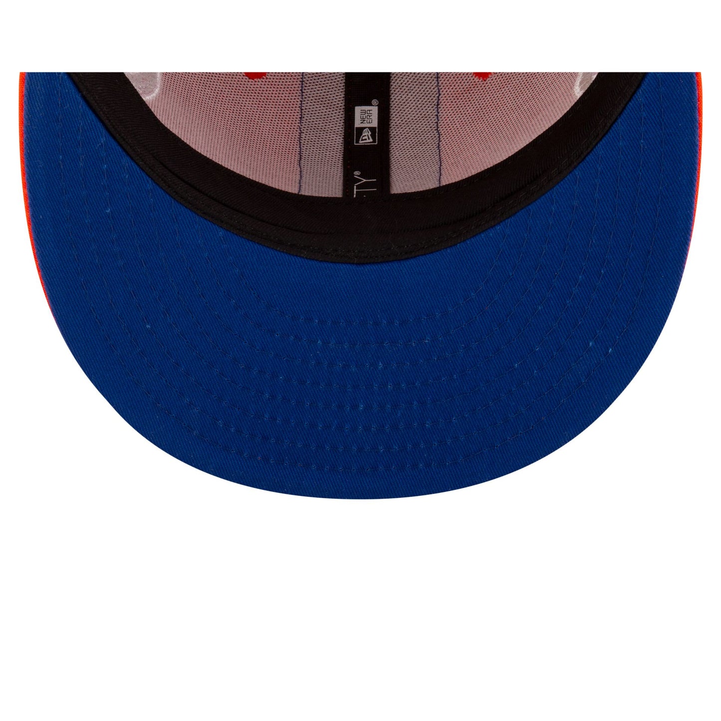 The Florida Gators Helmet 9FIFTY Snapback features an embroidered Gators logo at the left and right-wear side and a helmet stripe down the middle of the crown. Additional details include a team tag on a snapback closure at the rear.