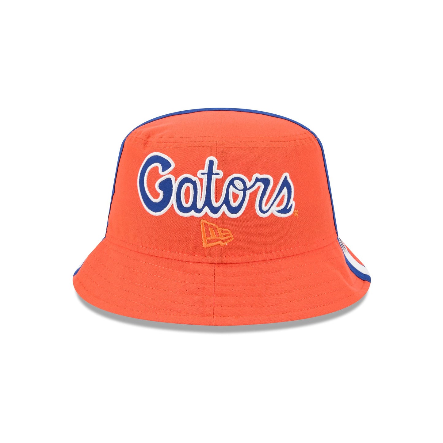 The Florida Gators Helmet Bucket Hat features an embroidered Gators helmet design throughout.