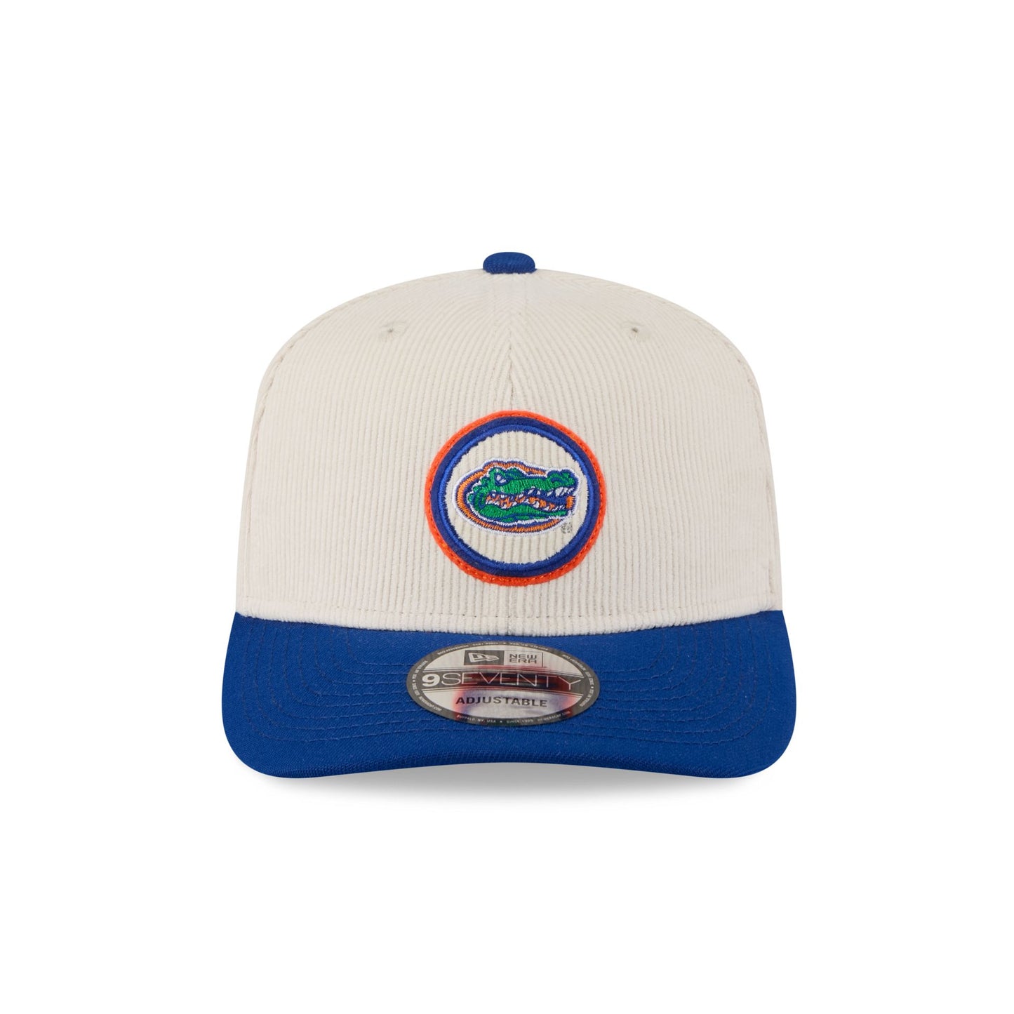 The Florida Gators Loyal Corduroy 9SEVENTY Stretch-Snap features an embroidered Gators logo at the front panels against a corduroy fabrication throughout the cap. Additional details include an alternate logo at the right-wear side with an adjustable stretch-snap closure at the rear.