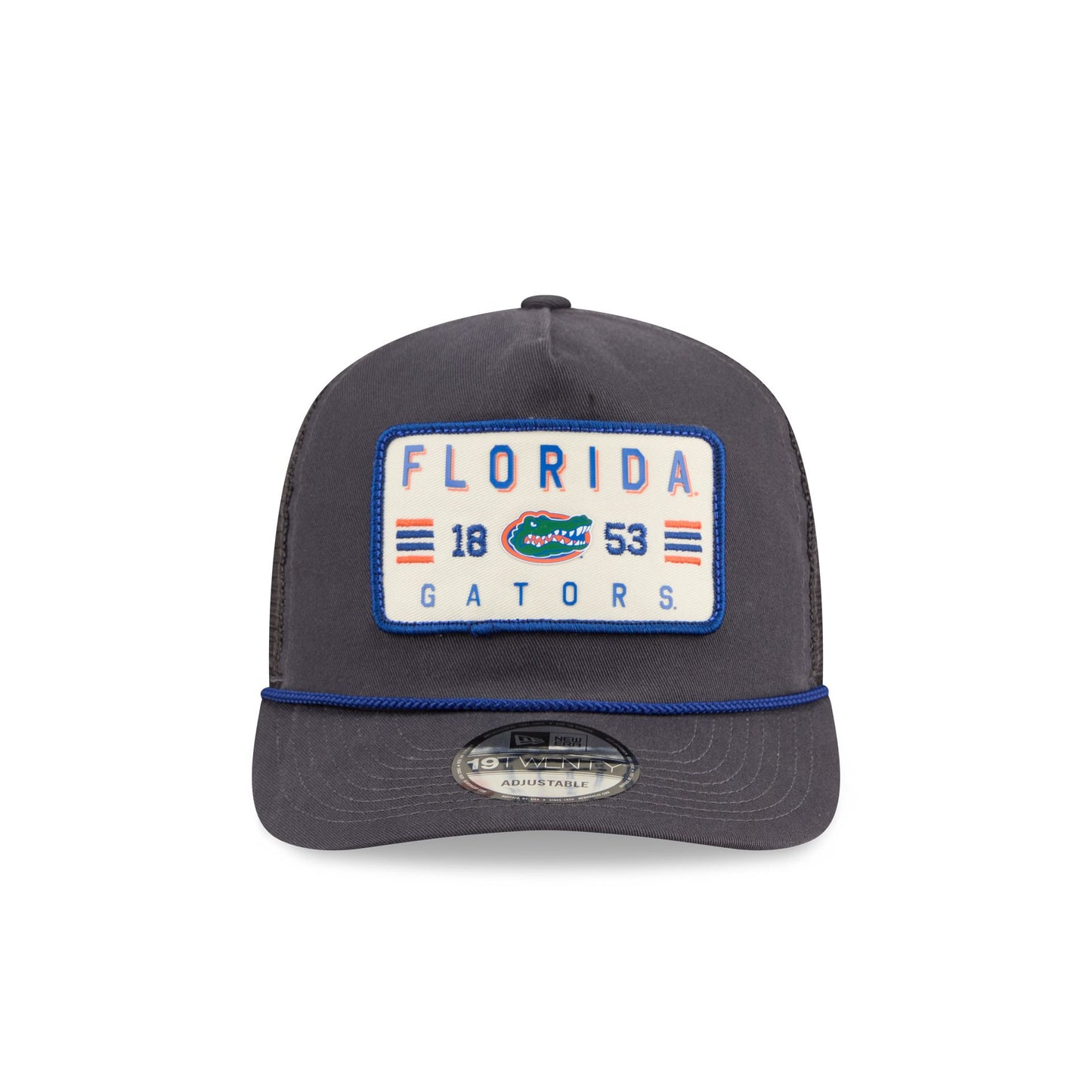 The Florida Gators Washed Graphite 19TWENTY Trucker features an embroidered Gators patch at the front panels against a soft washed fabrication. Additional details include an adjustable snapback closure at a mesh rear and a gray undervisor.