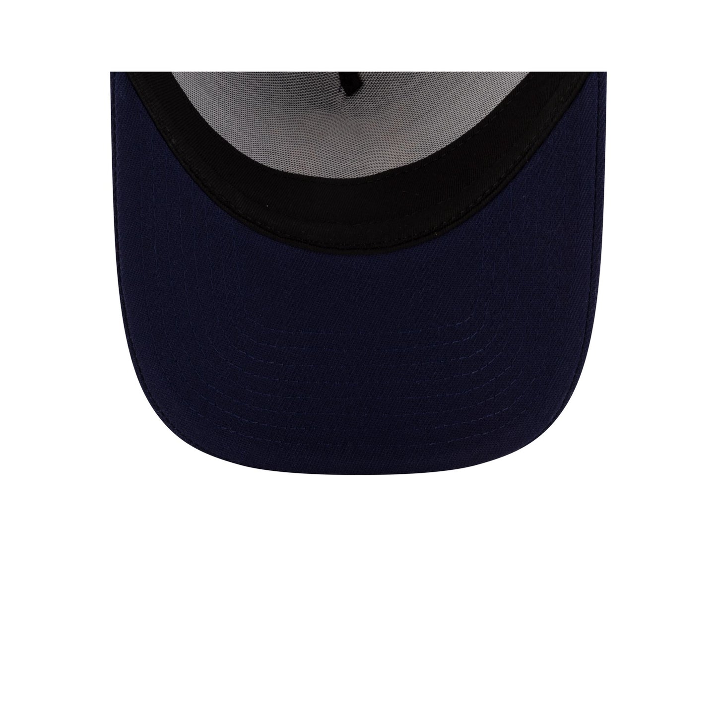 The Florida Panthers 25 Years 9FORTY A-Frame Trucker features an embroidered Panthers logo at the front panels with a 25 Year anniversary patch at the right-wear side. Additional details include a team wordmark above a snapback closure at the rear and a navy undervisor.