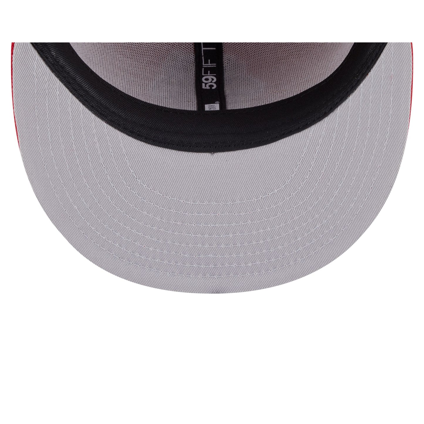 The Florida Panthers Deceptor 59FIFTY Fitted Cap features an embroidered Panthers deceptive logo at the front panels with a team logo at the right-wear side. Additional details include a wordmark at the rear, and a gray undervisor.