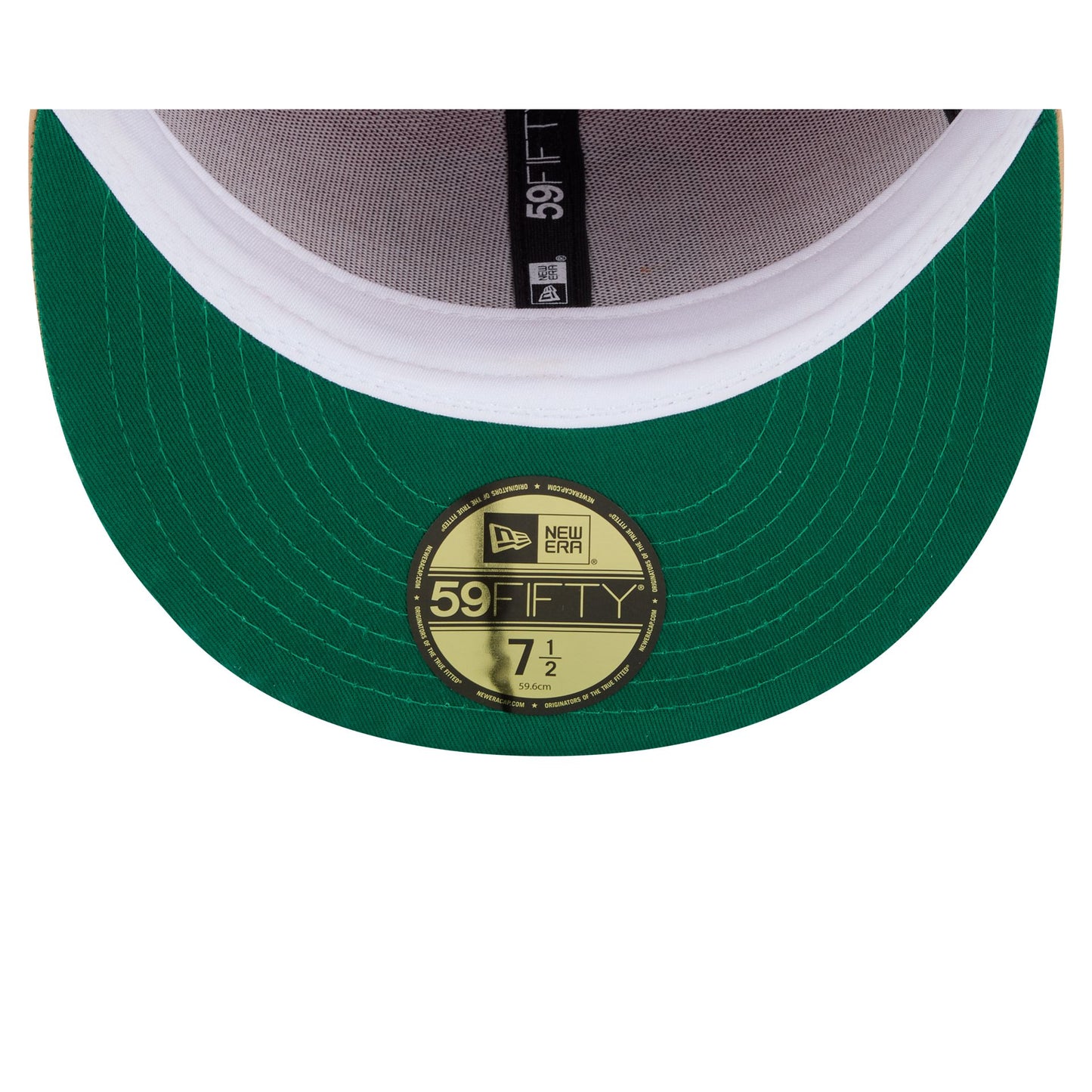 The Florida Panthers Leather Visor 59FIFTY Fitted Cap features an embroidered Panthers logo at the front panels with a cream leather visor. Additional details include an NHL Shield logo at the rear and a green undervisor with leather accents throughout.