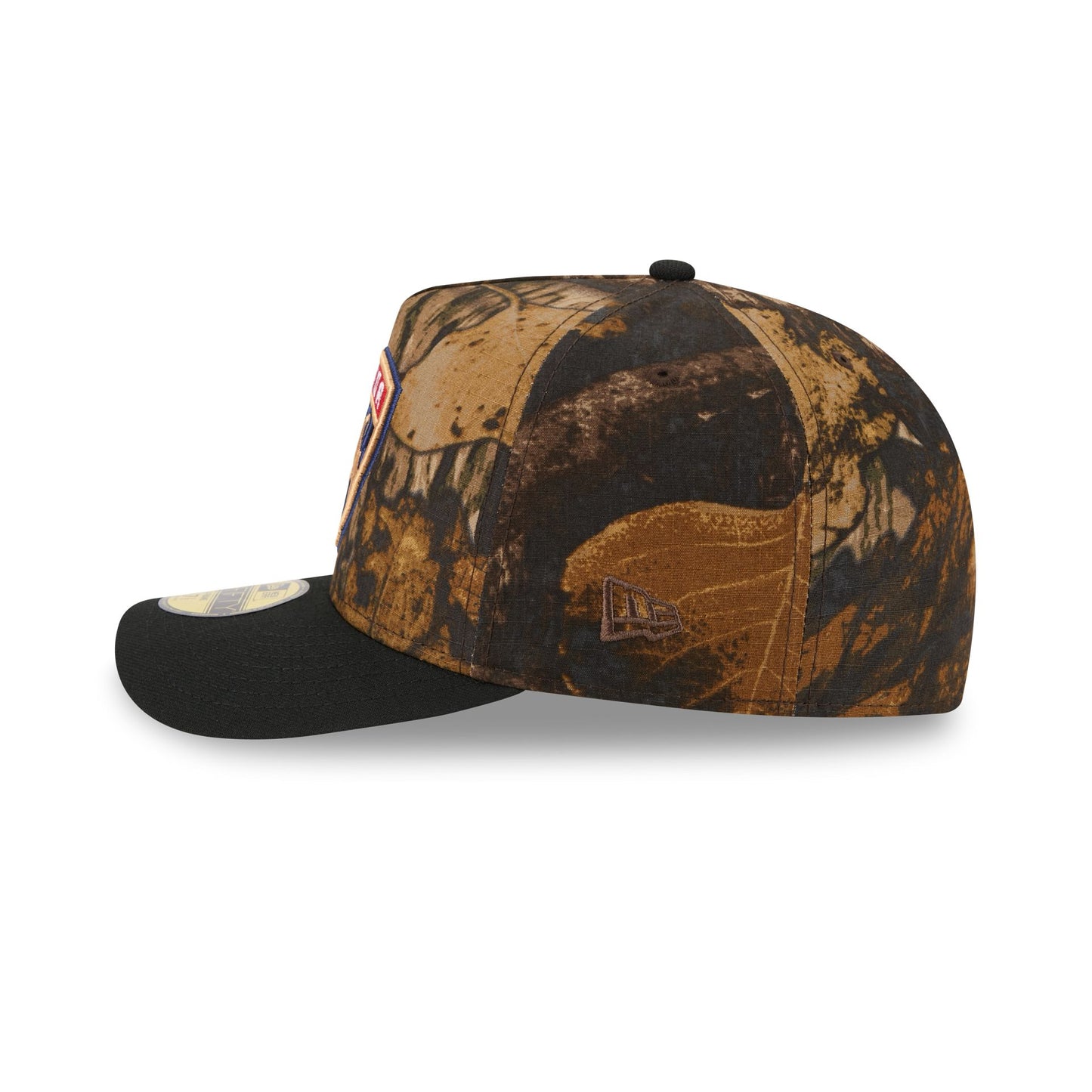 The Florida Panthers Ripstop Camo 59FIFTY A-Frame Fitted Cap features an embroidered Panthers logo at the front panels against a specialty Japanese milled ripstop camo fabrication from Three Looms Japan Fabrics throughout the cap. Additional details include an NHL Shield logo at the rear and a gray undervisor.