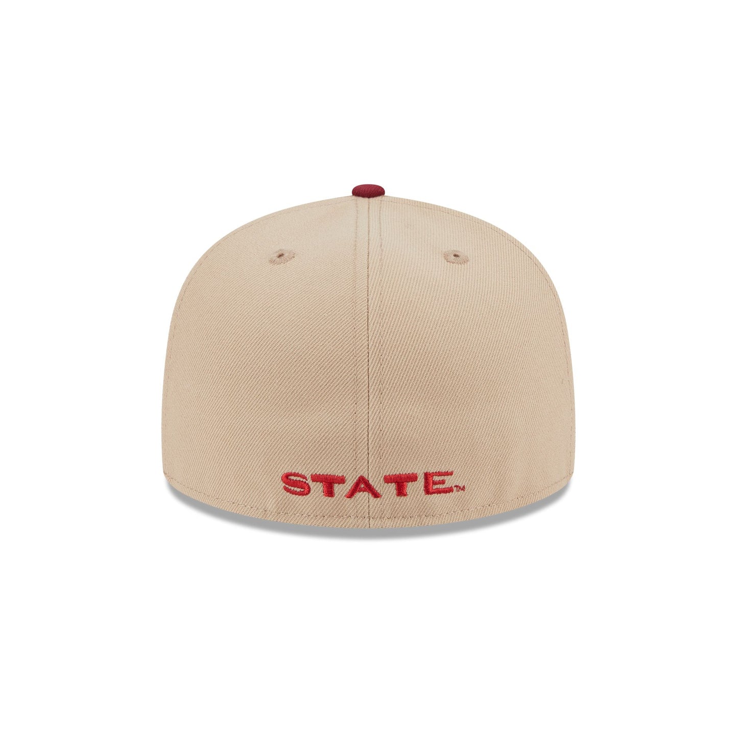 The Florida State Seminoles Camel College Vault 59FIFTY Fitted Cap features an embroidered Seminoles logo at the front panels with a matching team wordmark at the rear and a gray undervisor.