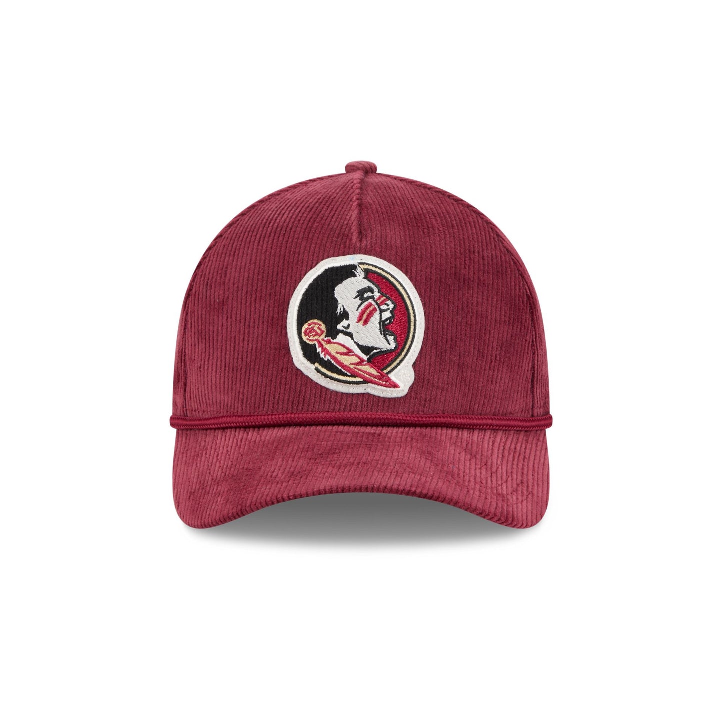 The Florida State Seminoles Corduroy 9FORTY M-Crown A-Frame Snapback features an embroidered Seminoles logo at the front panels with a corduroy fabrication throughout and a rope at the visor. Additional details include a snapback closure at the rear and a gray undervisor.
