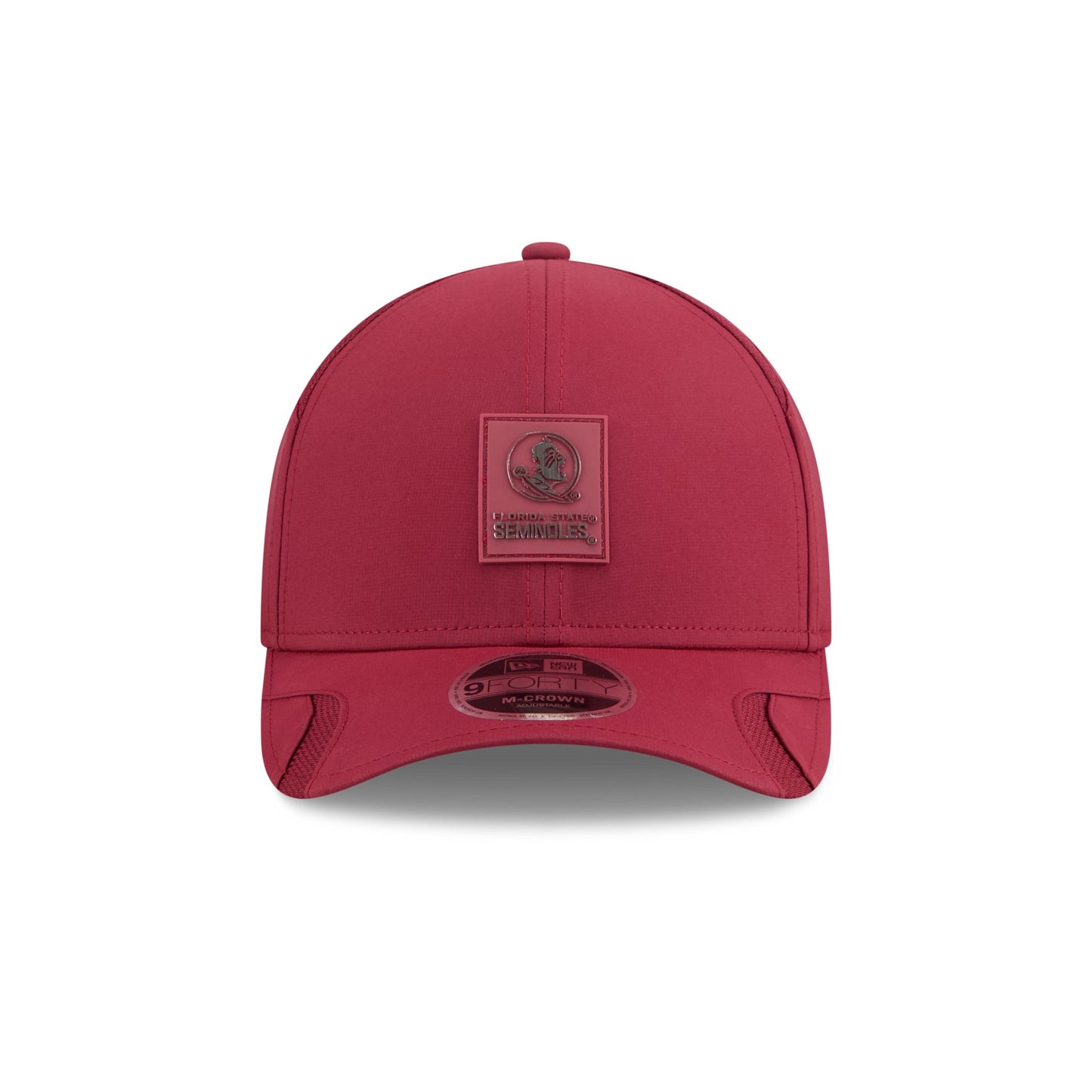 The Florida State Seminoles Hot Weather 9FORTY M-Crown Snapback features a sewn-down silicone Seminoles logo patch at the front panels with a water-repellent quill tech fabrication throughout and a quick-dry cushioned sweatband to absorb moisture. Additional details include a team wordmark on a soft silicone snapback closure at the rear with team color silicone transfer details at the undervisor.