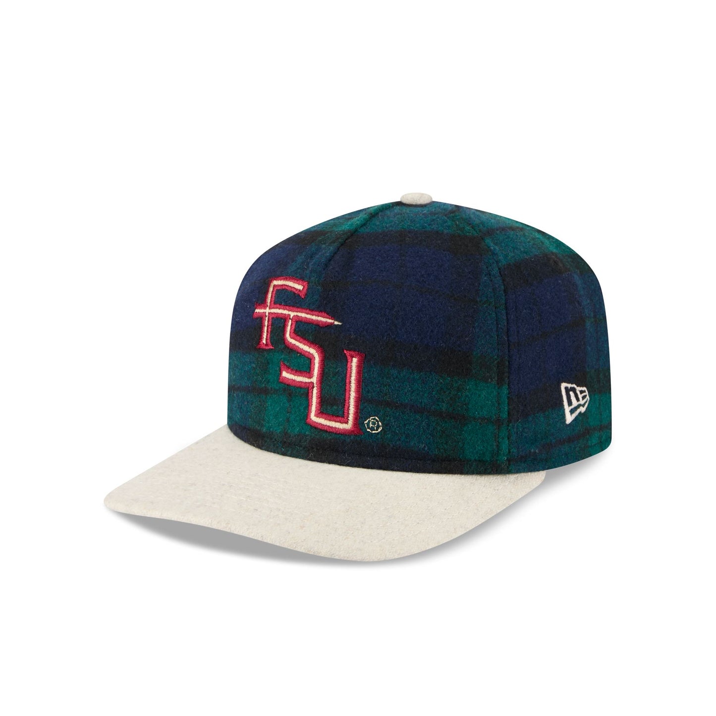 The Florida State Seminoles Plaid Letterman 19TWENTY Adjustable Cap features an embroidered Seminoles logo at the front panels against a wool plaid fabrication throughout the cap. Additional details include a team circle patch at the right-wear side and adjustable leather closure at the rear.