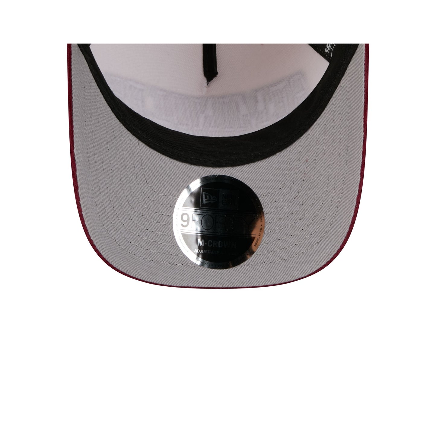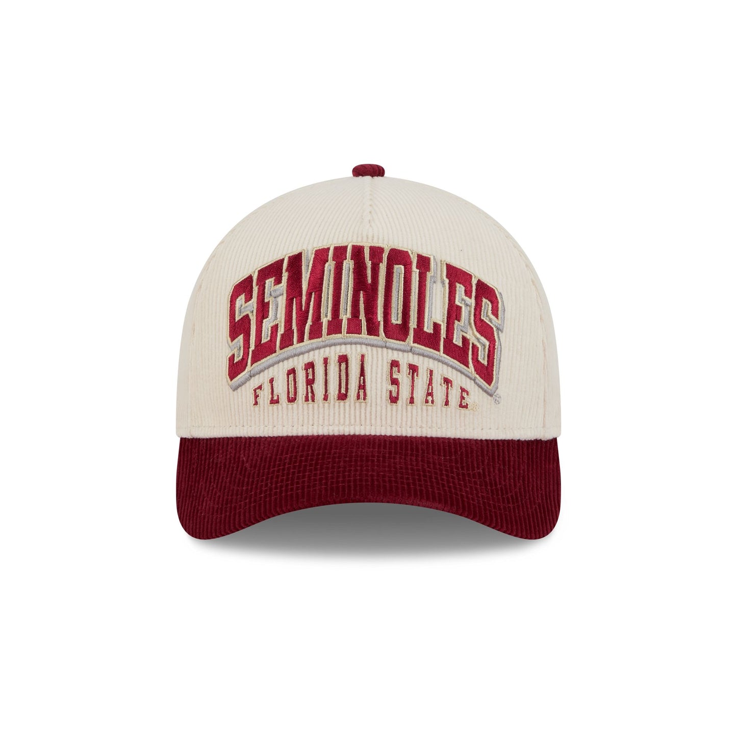 The Florida State Seminoles Stacked Corduroy 9FORTY M-Crown A-Frame Snapback features an embroidered Seminoles stacked wordmark at the front panels with a logo at the right-wear side. Additional details include a corduroy fabrication throughout, a snapback closure at the rear, and a gray undervisor.