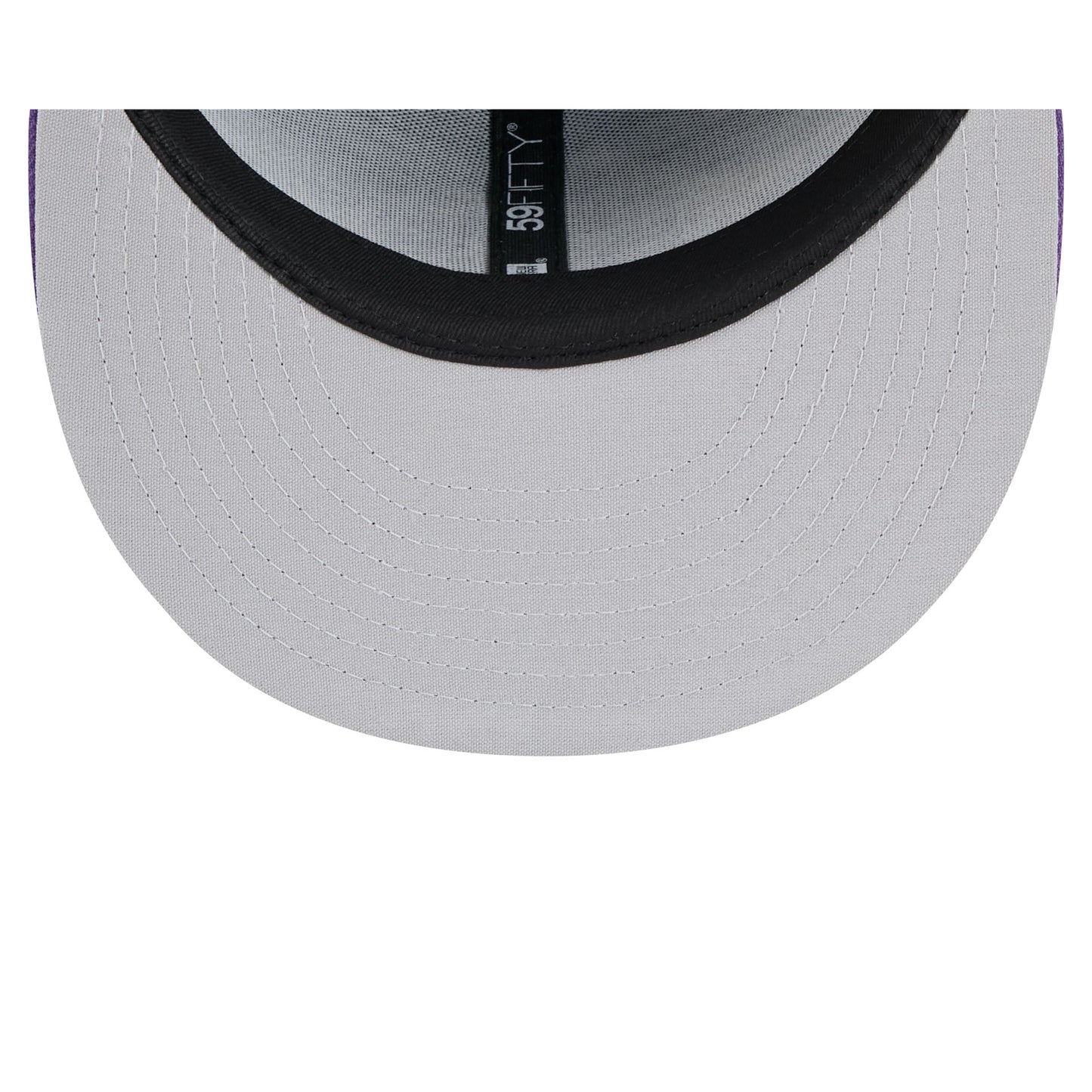The Fresno Grizzlies Copa de la Diversión 59FIFTY Fitted Cap features an embroidered Lowriders logo at the front panels with a matching MiLB Batterman logo at the rear.