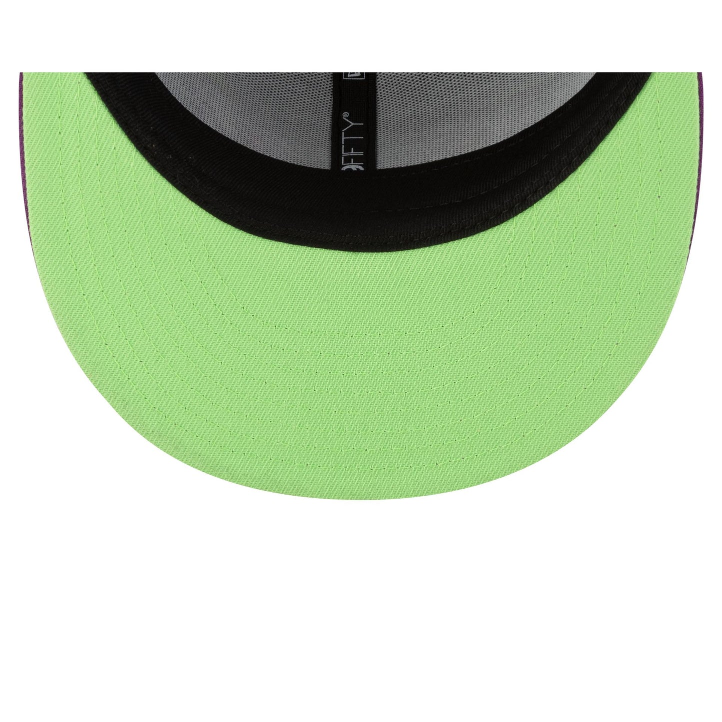 The Fresno Grizzlies Halloween Purple 59FIFTY Fitted Cap features an embroidered Grizzlies themed logo at the front panels with a matching MiLB Batterman logo at the rear, a purple visor, and a green undervisor.