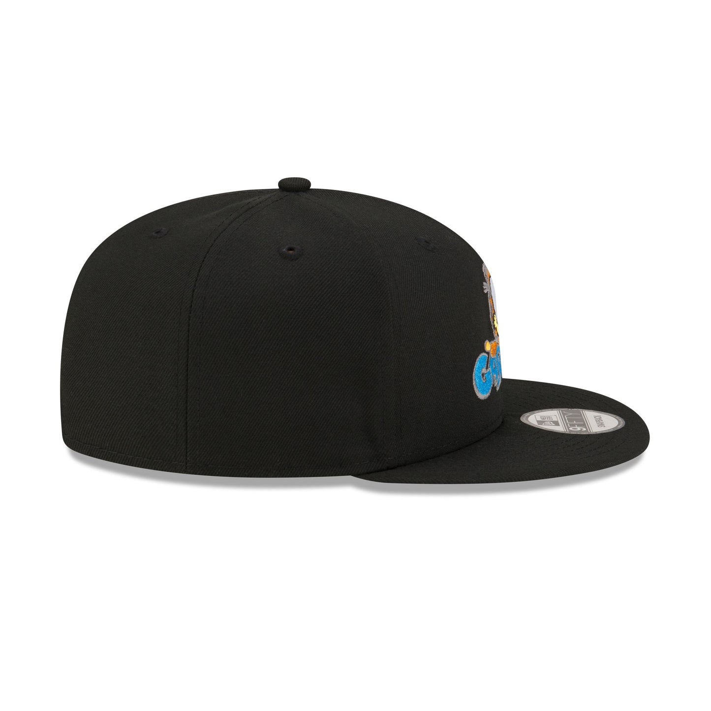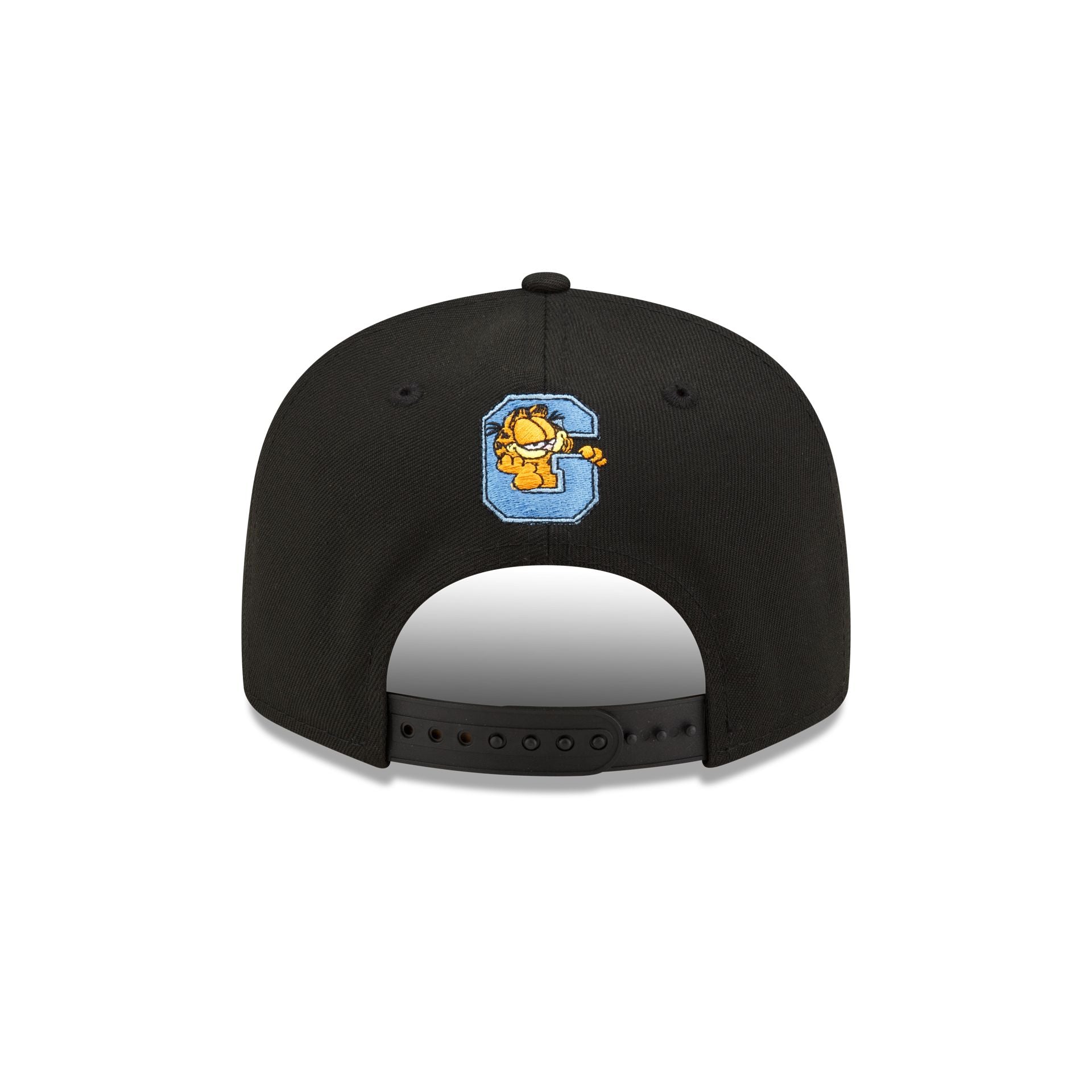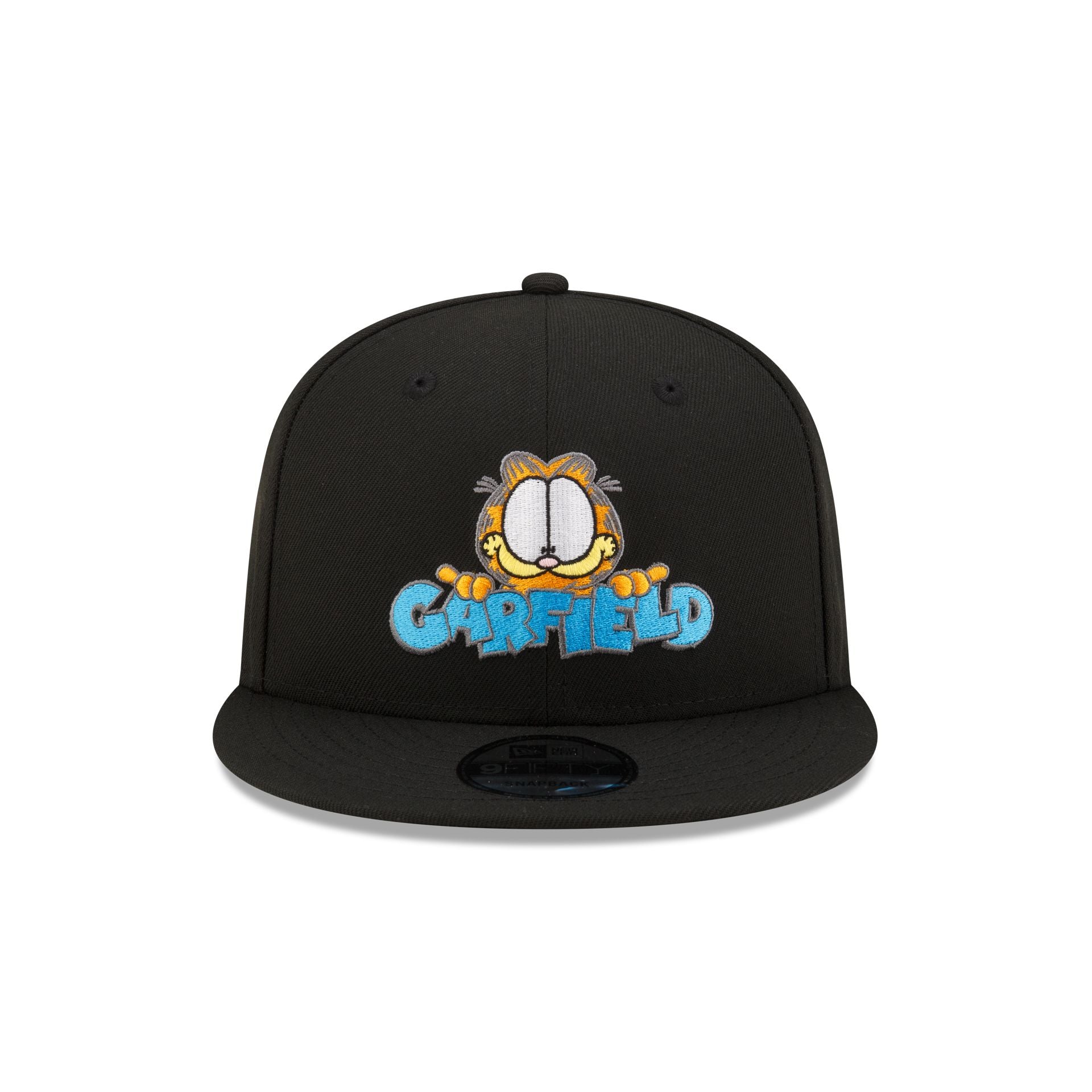 The Garfield Logo 9FIFTY Snapback features an embroidered logo at the front panels with an alternate logo above a snapback closure at the rear and a black undervisor.