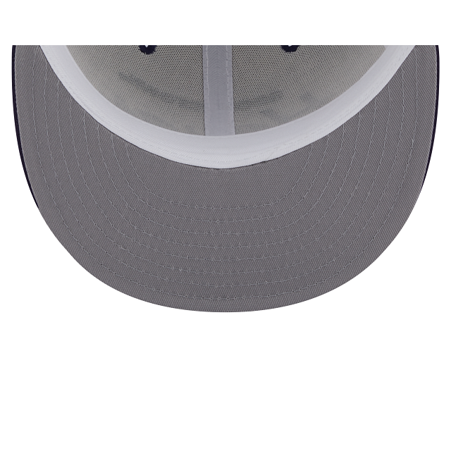 The Georgetown Hoyas College Vault Script 9FIFTY Snapback features an embroidered Hoyas script at the front panels, a 1984 NCAA Championship patch at the right-wear side, and a snapback closure at the rear. Additional details include a blue visor and gray undervisor.